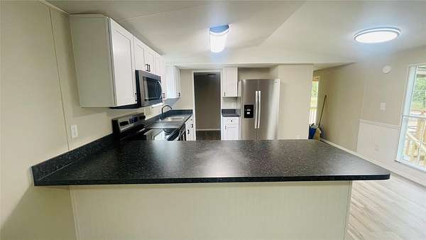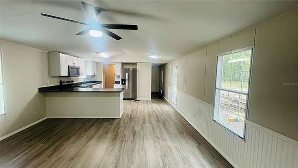 Enjoy peaceful country living just south of Chiefland in this beautifully updated 3-bedroom, 2-bath singlewide manufactured home set on 10 acres of serene, agriculturally zoned land. The home features a durable metal roof and stylish vinyl plank flooring throughout. The modern kitchen boasts brand-new cabinets, an electric range, microwave range hood, dishwasher, and refrigerator perfect for any home chef.