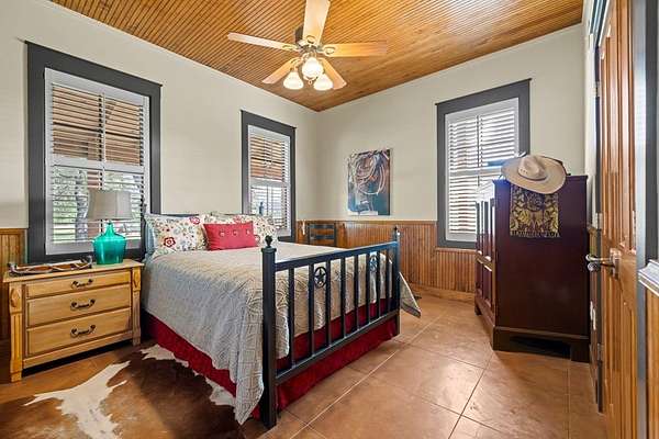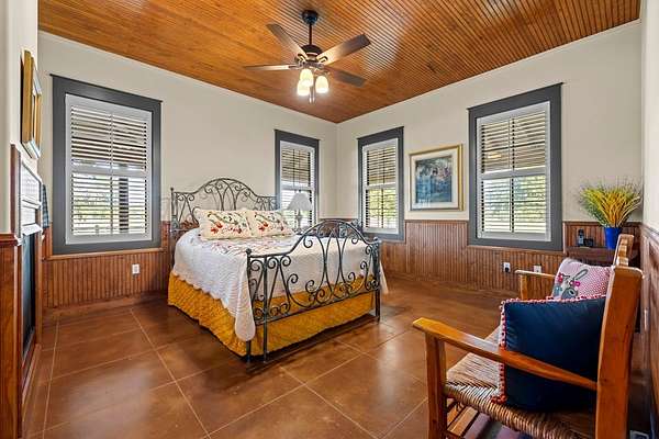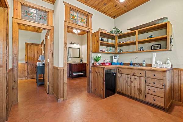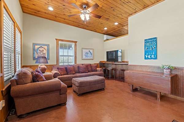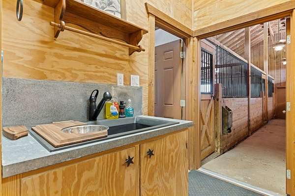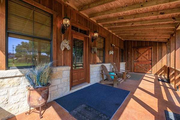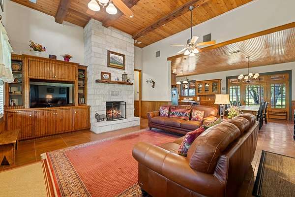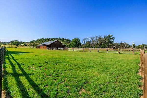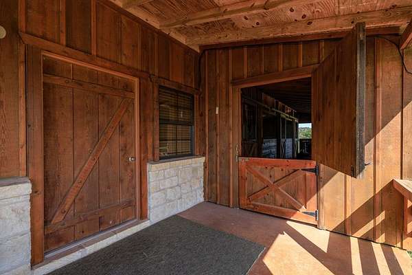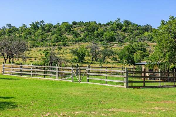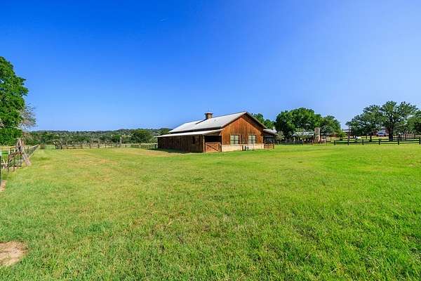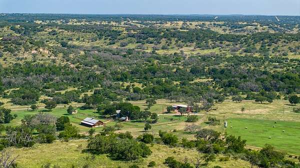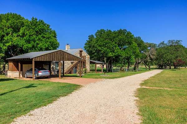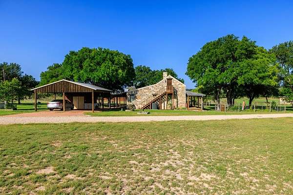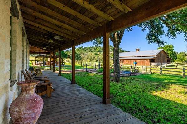 This private Hill Country estate offers a beautifully maintained homestead with a versatile mix of residential, agricultural, and equestrian improvements. Located between Harper/ Doss and a short drive to Fredericksburg, this property is ideal for full-time living, extended family use, or a peaceful weekend retreat. The 2B/2B main residence features classic Hill Country architecture with rock exterior, deep covered porches, and a warm ranch-style interior. Inside, you'll find stained concrete floors, wood ceilings, a large masonry fireplace, and an open-concept living area that flows seamlessly into a spacious kitchen with stainless steel appliances, a wine fridge, a farmhouse sink, and a center island perfect for gathering. The primary suite includes a gas fireplace, and the home has been recently updated with fresh interior paint, a new HVAC system, and a 22 kW Generac generator for added peace of mind. A separate exterior staircase leads to a finished bonus room above, currently used as a cozy guest space with room for two queen beds -- perfect for visiting grandkids or extra guests. Outdoors, enjoy a front and back porch, carport, and a backyard patio complete with built-in grills and another masonry fireplace -- perfect for entertaining or unwinding under the stars. In addition to the main home, the property includes two guest accommodations. A 750 sq ft casita, built in 2017, sits beside a large metal barn with a 600 sq ft garage/workshop and open bay for equipment. Adjacent to the home, a wooden horse barn features six stalls and another well-appointed guest suite, complete with a kitchenette, living area, and full bath. Both casitas share the same ranch-style charm, featuring concrete floors and wood ceilings. The land features good soils, gentle topography, improved pastures, and a 12-acre hay field. Infrastructure includes a water well with 2,500-gallon storage tank, three septic systems, rainwater collection, and a 1,000-gallon propane tank with surge protection and lightning rods. With its flexible layout, multiple residences, and solid improvements, this property is ready to support a variety of uses -- from quiet country living to multigenerational family stays or recreational enjoyment. It's a rare find in a great location.