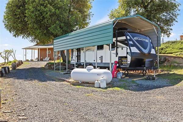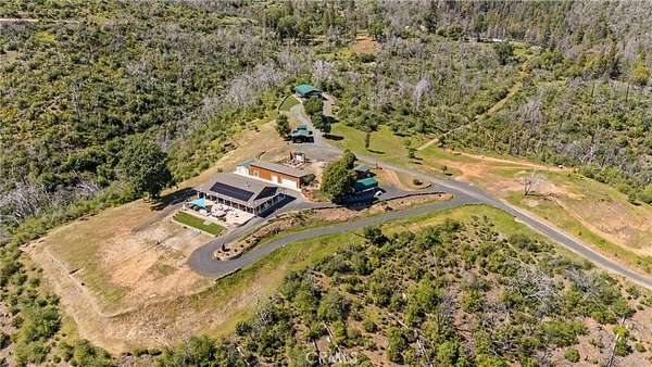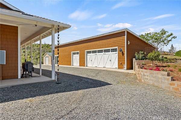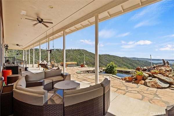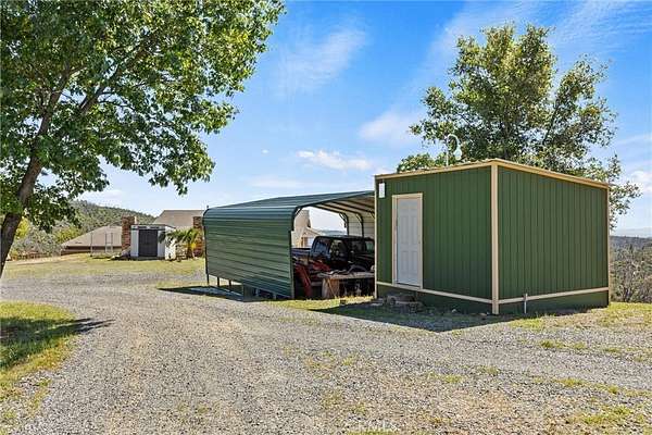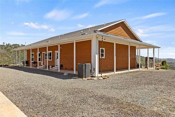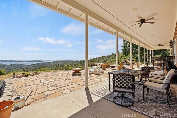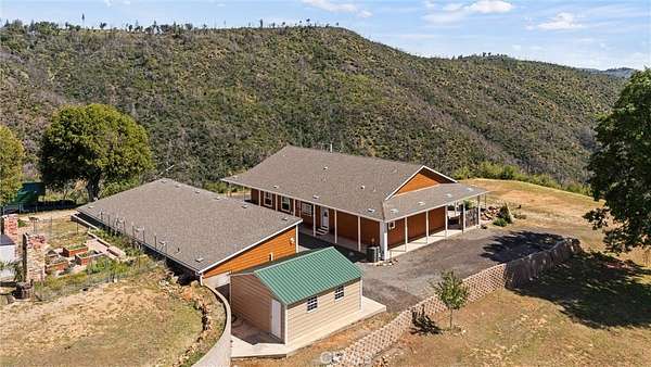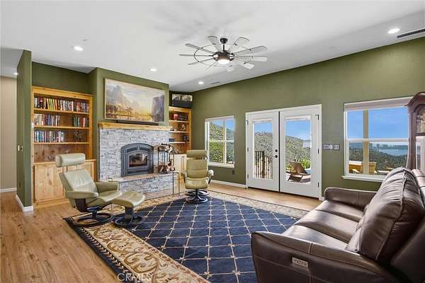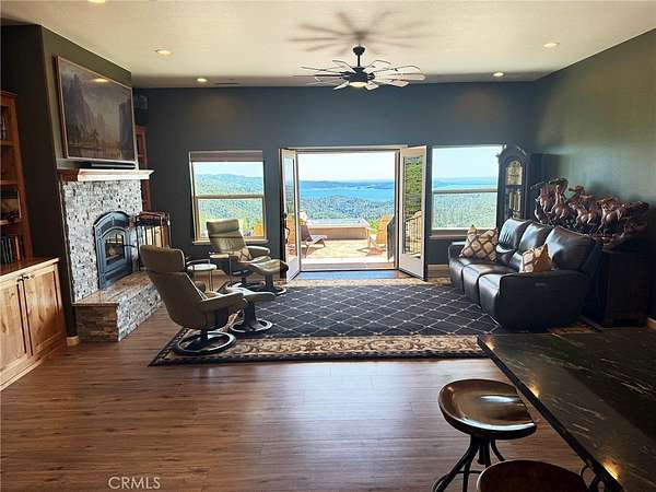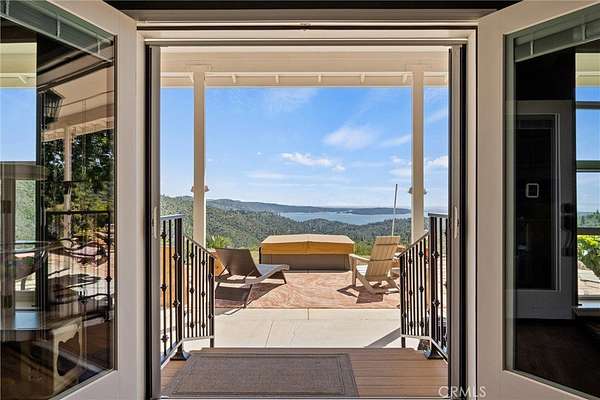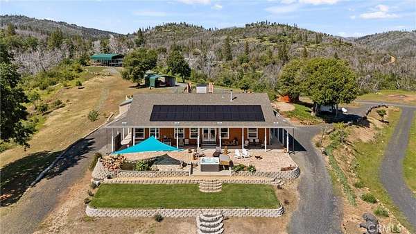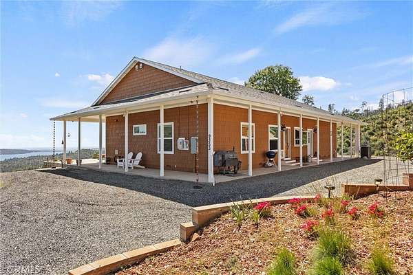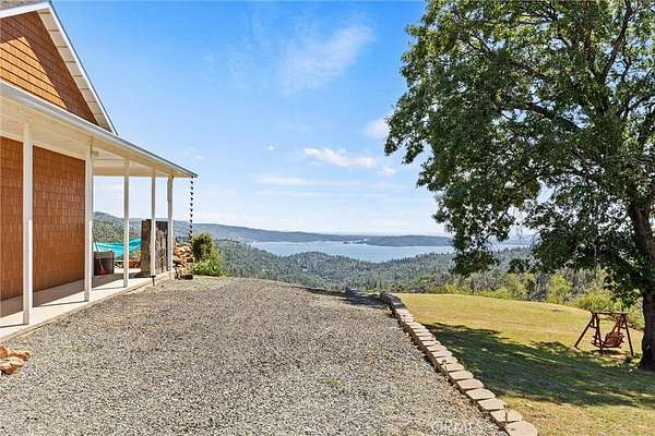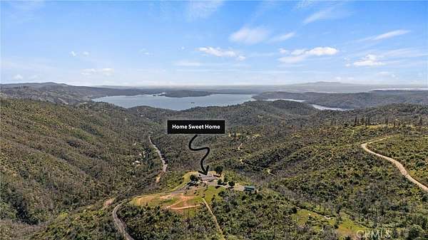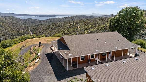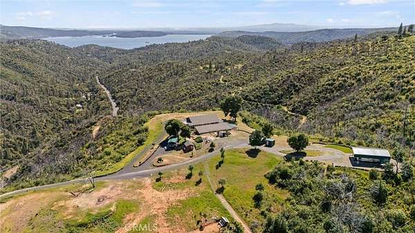 The large black iron electric gate is the gateway to your private driveway, which leads to a secluded hilltop with the most stellar views. In the middle of these 40 acres, you'll find a beautiful custom-built home with an open floor plan & large windows that frame captivating views of the hills, lake, & marina. There is custom small-knotty-alder-wood cabinetry throughout, 10-foot ceilings, 2X6 construction, & double insulation. GREAT ROOM includes the FAMILY ROOM with an ?inviting wood-burning fireplace, DINING ROOM, & a KITCHEN with an island & a sit-up bar. Thru the glass French door, you can access the front patio, fish pond, & hot tub area. The KITCHEN has custom cabinets & granite countertops. MASTER SUITE has an en-suite bath with a soaking tub with a view of the lake. Shower glass is 1” Art Deco etched glass from Santa Monica. The walk-in closet has convenient, direct access to the LAUNDRY ROOM with lots of custom cabinetry for storage! There are TWO additional BEDROOMs. Look closely, & you'll find an additional cozy ?B?ONUS ROOM with a built-in desk, bookshelves, & cabinets. The SECOND UNIT/BUILDING is 1584 SqFt with a 3+ car garage & a gym. Gym is 672 SqFt & includes a 1/2 bath & a large storage closet. The generous 3-car GARAGE has a custom 24’ wide garage door & includes a workshop area. Pre-wired for an electric car charging unit. Both the GYM & the GARAGE are fully insulated. Masterspa Enterprise HOT TUB sits off the front patio, where you can enjoy the views. Mineral filters are used, so fewer chemicals are needed. There is a tranquil FISHPOND off the front patio. 20X20 steel WOODSHED comes with a 40-ton log splitter. The COVERED 42’ PARKSTYLE TRAILER is currently renting for $ 1,000/month, & the tenant would like to stay. OWNED 38 panel SOLAR system is paid in full. A 12 kW GENERATOR automatically kicks on during power outages. Enclosed GARDEN. PRIVATE SHOOTING RANGE. Buyer To Verify - seller believes the property is approved for 4 ADUs. There is a second road that services this property. OUTBUILDINGS & ADDITIONAL STRUCTURES: 40X40 aluminum RV cover. 13X30 RV parking with septic/electric. 8X6 tool shed adjacent to the garden. 24x24 steel awning with partial siding for tractor & equipment storage. 12X12 Metal roof building with a window & a window air conditioner. The pump house houses the well, a 2500-gallon water tank, a three-stage filtration system, fire suppression pumps, & electrical components for the property. Text Becky 530-636-0936