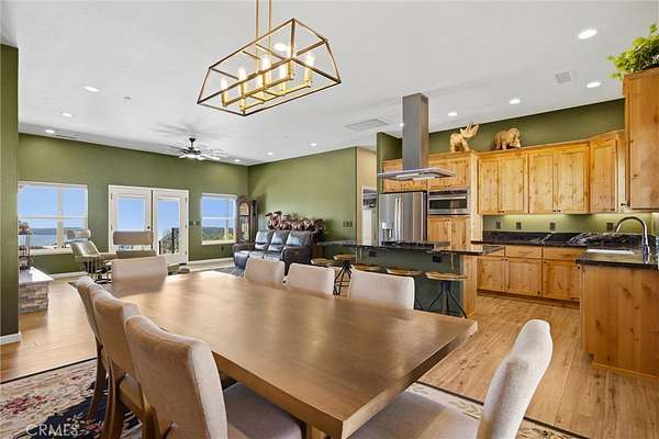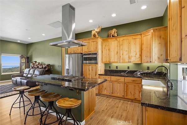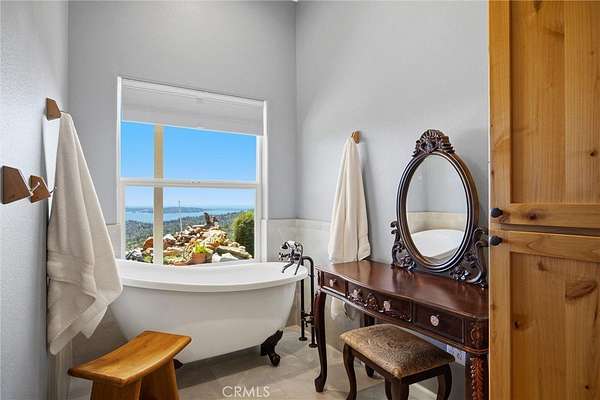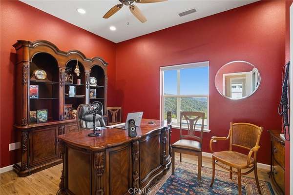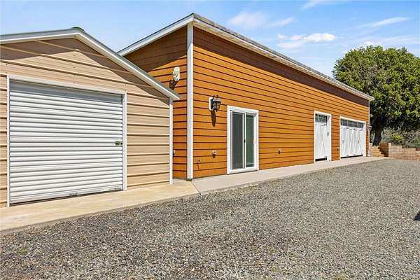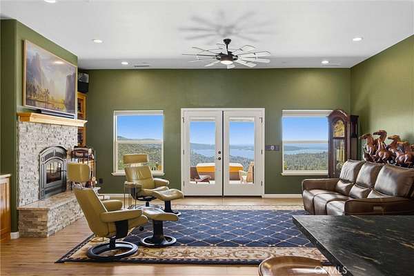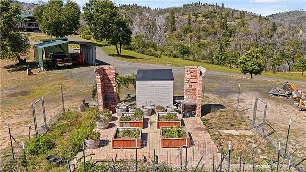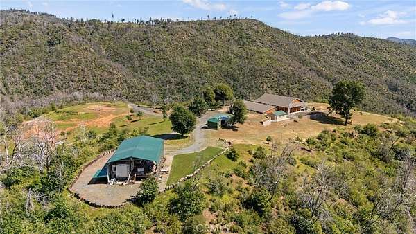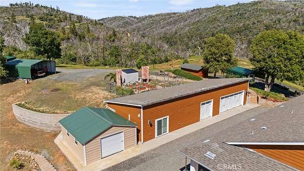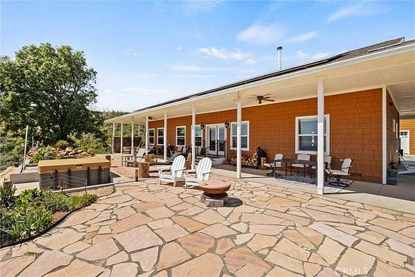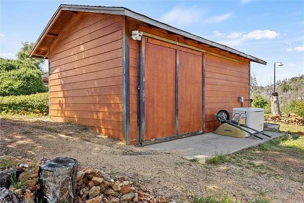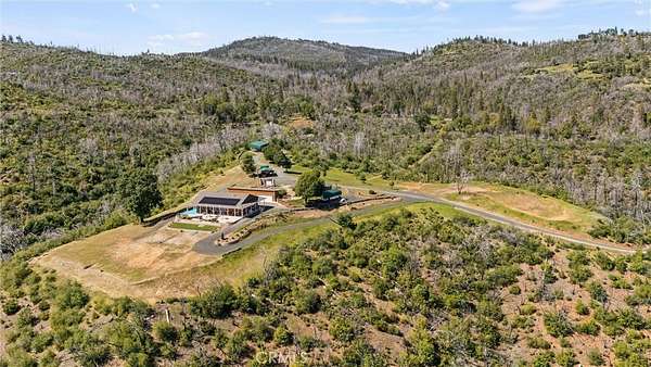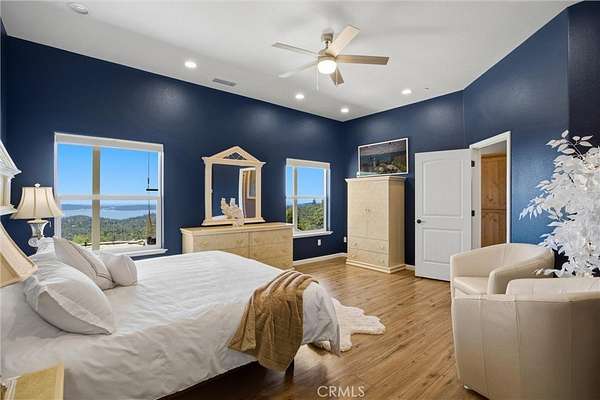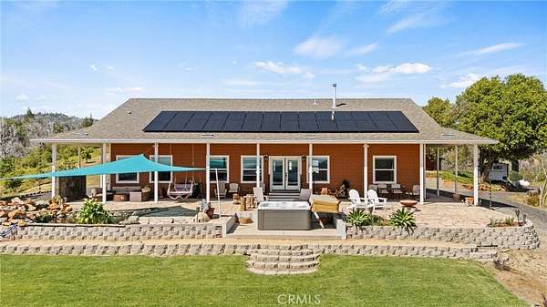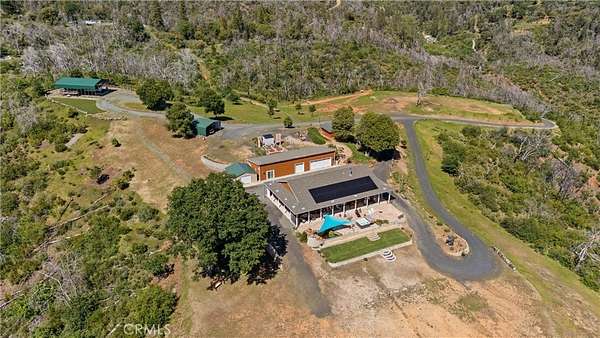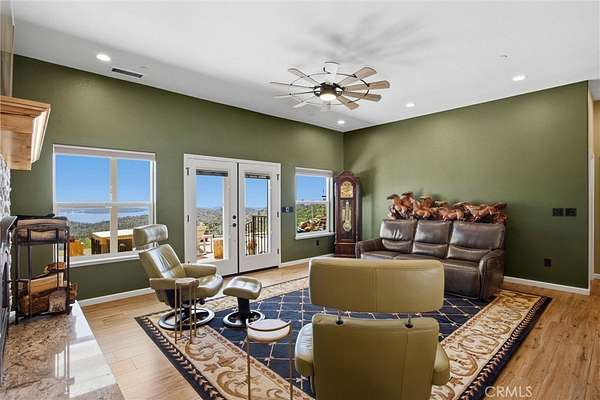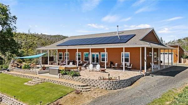 The large black iron electric gate is the gateway to your private driveway, which leads to a secluded hilltop with the most stellar views. In the middle of these 40 acres, you'll find a beautiful custom-built home with an open floor plan & large windows that frame captivating views of the hills, lake, & marina. There is custom small-knotty-alder-wood cabinetry throughout, 10-foot ceilings, 2X6 construction, & double insulation. GREAT ROOM includes the FAMILY ROOM with an ?inviting wood-burning fireplace, DINING ROOM, & a KITCHEN with an island & a sit-up bar. Thru the glass French door, you can access the front patio, fish pond, & hot tub area. The KITCHEN has custom cabinets & granite countertops. MASTER SUITE has an en-suite bath with a soaking tub with a view of the lake. Shower glass is 1” Art Deco etched glass from Santa Monica. The walk-in closet has convenient, direct access to the LAUNDRY ROOM with lots of custom cabinetry for storage! There are TWO additional BEDROOMs. Look closely, & you'll find an additional cozy ?B?ONUS ROOM with a built-in desk, bookshelves, & cabinets. The SECOND UNIT/BUILDING is 1584 SqFt with a 3+ car garage & a gym. Gym is 672 SqFt & includes a 1/2 bath & a large storage closet. The generous 3-car GARAGE has a custom 24’ wide garage door & includes a workshop area. Pre-wired for an electric car charging unit. Both the GYM & the GARAGE are fully insulated. Masterspa Enterprise HOT TUB sits off the front patio, where you can enjoy the views. Mineral filters are used, so fewer chemicals are needed. There is a tranquil FISHPOND off the front patio. 20X20 steel WOODSHED comes with a 40-ton log splitter. The COVERED 42’ PARKSTYLE TRAILER is currently renting for $ 1,000/month, & the tenant would like to stay. OWNED 38 panel SOLAR system is paid in full. A 12 kW GENERATOR automatically kicks on during power outages. Enclosed GARDEN. PRIVATE SHOOTING RANGE. Buyer To Verify - seller believes the property is approved for 4 ADUs. There is a second road that services this property. OUTBUILDINGS & ADDITIONAL STRUCTURES: 40X40 aluminum RV cover. 13X30 RV parking with septic/electric. 8X6 tool shed adjacent to the garden. 24x24 steel awning with partial siding for tractor & equipment storage. 12X12 Metal roof building with a window & a window air conditioner. The pump house houses the well, a 2500-gallon water tank, a three-stage filtration system, fire suppression pumps, & electrical components for the property. Text Becky 530-636-0936