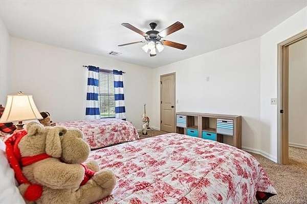 Situated on over 3 acres on a quiet cul-de-sac, this property offers six true bedrooms, including four on the main level, along with three full bathrooms, each featuring double sinks. The home includes an open kitchen and living area, a large game or theater room, and a three-car garage. Storage is abundant throughout with multiple closets and walk-out attic space. The primary suite features an updated bathroom with double sinks, new vanity, jetted tub, separate shower, and a large walk-in closet. Since October 2022, updates include installation of a large picture window in the dining room replacing three smaller windows, upgraded family room windows, addition of a solar tube in the kitchen, interior and cabinet paint, new primary bathroom vanity, added attic insulation, smart thermostats, and a $24,000 swim spa with a 6-inch reinforced concrete underneath. Additional features include a tankless water heater, heat pump system, in-ground storm shelter in the garage, screened-in patio, large uncovered patio, shed and a 24-foot above-ground pool with deck. The property includes a fenced yard with additional land extending beyond, as well as a separate fenced area suitable for a dog run or storage. A security system with eight exterior cameras is also included. Perfect Location-- Country feel but only 2.7 miles to walmart!