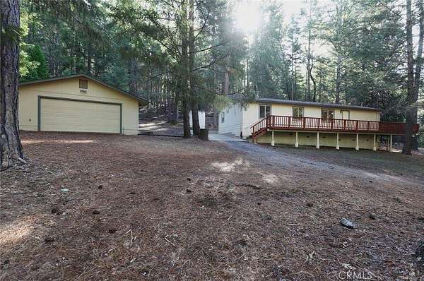 Nestled on over 5 acres of absolute privacy, this well-kept 3 bedroom, 2 bath manufactured home is surrounded by tall pines, fresh air, and peaceful living. Step inside to find newly laid laminate flooring, a bright open floorplan connecting the kitchen and dining area, and new kitchen appliances that make cooking a breeze. The convenient indoor laundry room adds extra functionality to the home. The primary bedroom is thoughtfully situated on one end of the home for added privacy, while the two additional bedrooms are located on the opposite end. A detached 2 car garage provides ample space for parking, storage, or even a place for your furry friends. The home comes with a well and 1000 gallon holding tank that is gravity feed to the home in case of power outage, and a new roof was installed in 2018. Has a recorded 433 foundation. If you're searching for a private retreat with room to breathe, this property delivers the perfect blend of comfort and tranquility.