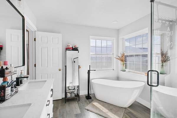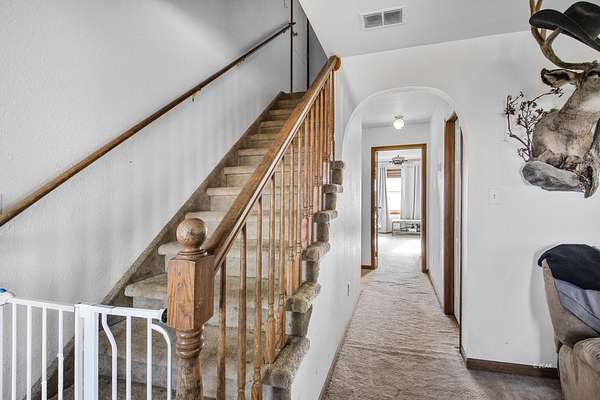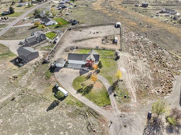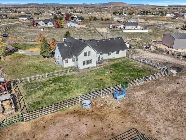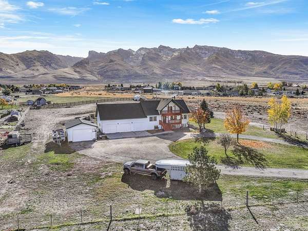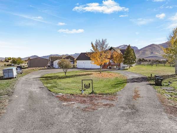 Welcome to this beautiful three-level farm-style horse property full of country charm, perfectly situated just off the back entrance of the Spring Creek Horse Palace, below the stunning Ruby Mountains! Offering 3,512 sq. ft. of living space, this home features 5 bedrooms, 3.5 bathrooms, and spacious design throughout. The inviting front patio and upstairs balcony with double doors add to the home's welcoming appeal. Inside, you'll find spacious rooms and a flowing layout - including a large kitchen that opens to the dining area, a generous living room with double doors to the side yard, and a cozy basement family room with a wood-burning stove. The newly updated primary bathroom adds a modern touch. Outside, enjoy a three-car attached garage plus a detached shop-perfect for hobbies, storage, or equipment. The 2.12-acre flat lot is fully fenced and cross-fenced, featuring green grass, mature trees, and plenty of space for horses or outdoor enjoyment. Take in wide-open skies and breathtaking Ruby Mountain views from your peaceful country setting. Agent Disclosure: Owner is a licensed Nevada Real Estate Agent. Agent is principal.