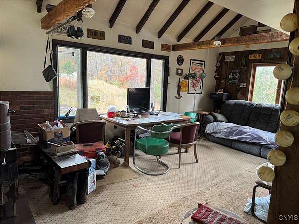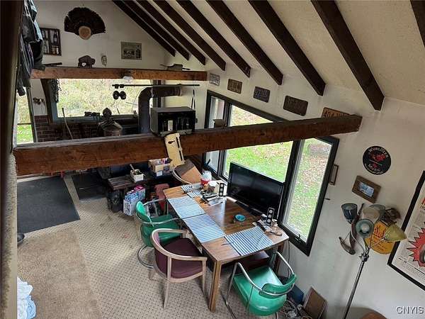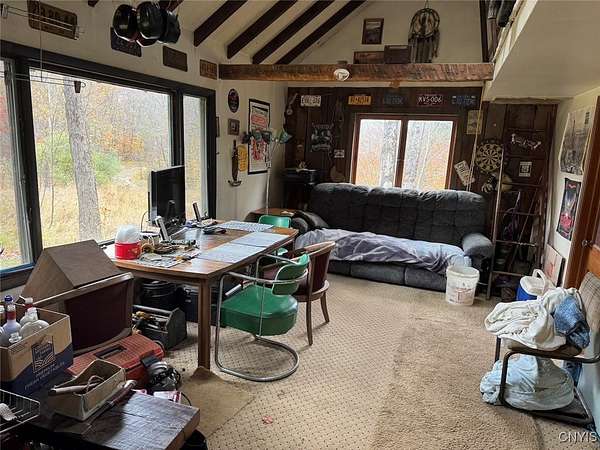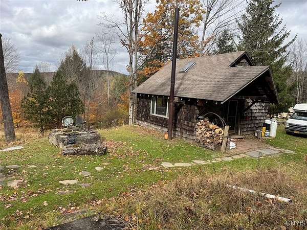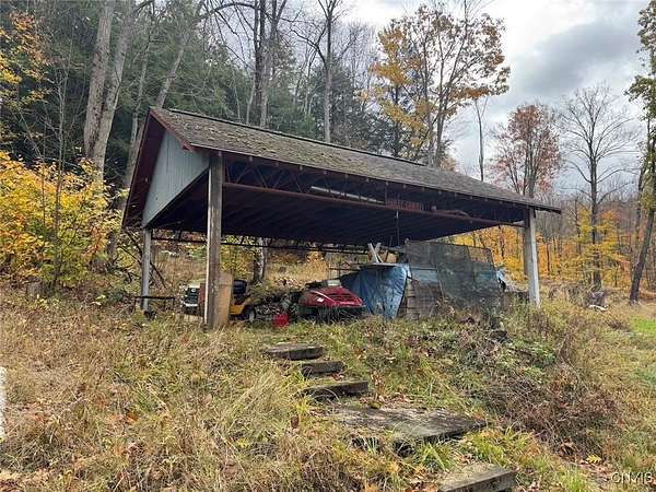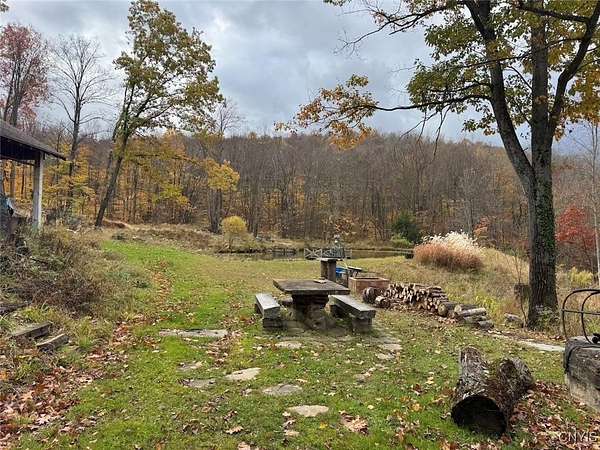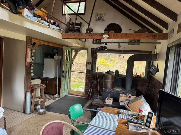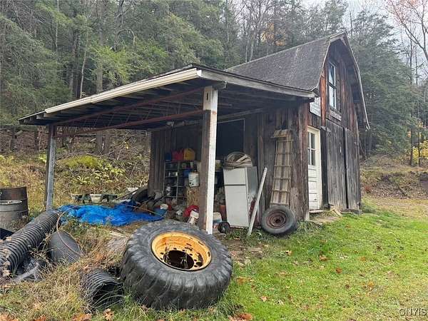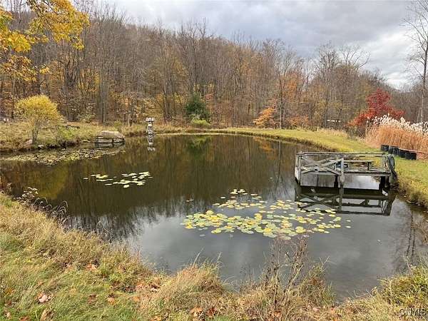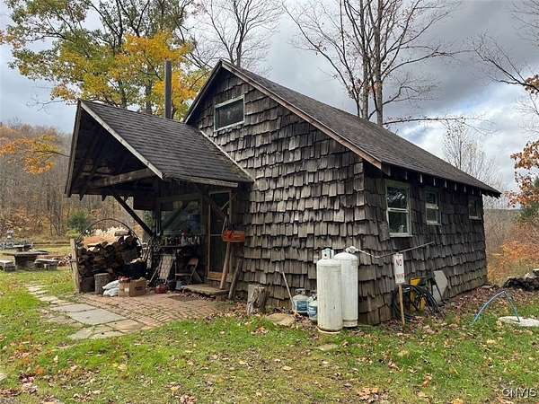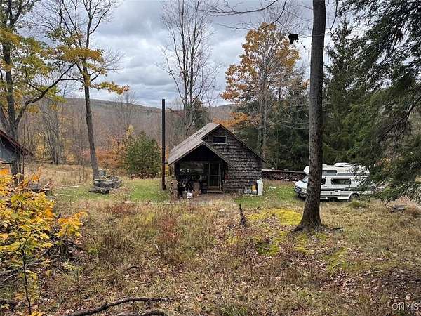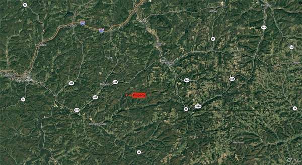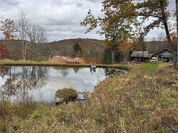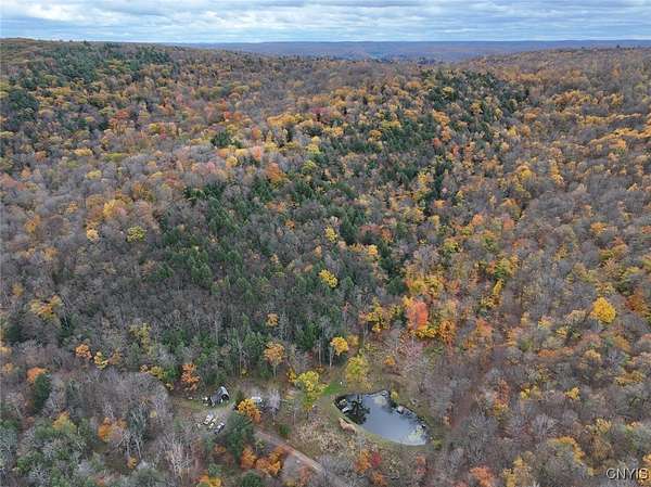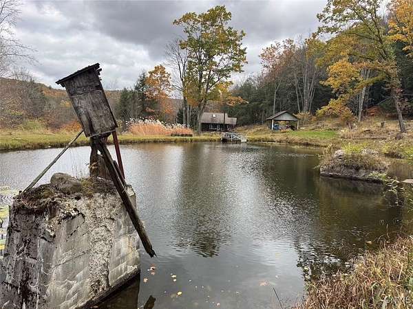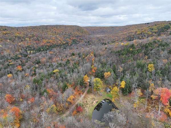 This country retreat consists of a cabin and a stocked pond on 19.1 acres located in Bolivar NY, Allegany County. Located in the back hills of Allegany County, this secluded getaway checks all the boxes of a great country retreat. The cabin has a spacious living room area, a kitchen, a bedroom, a full bathroom, and a loft up top. There is a spring-fed water hooked up to the cabin along with a septic system. There is no electric but the cabin is hooked up to a generator for power and a wood stove for heat. There is a large barn next to cabin with a lean-to which is great for storage. There is also an open pole barn which could be used for storage or turned into a picnic area. The large spring-fed, stocked pond is 14 ft. deep and is great for fishing. The land is a mixture of hardwoods and pines scattered throughout. The terrain is a mixture of rolling hills and level areas. Whitetail deer sign throughout for great hunting! The access from California Hollow Road is a private road which is approximately a half a mile to get back to the property. The private access is a gravel road and is mostly level for easy access. Great getaway location with pure seclusion and nothing but nature. If you're looking for an escape, this is it. Come have a look! This property is located approximately 7 minutes to Bolivar NY, 12 minutes to Shinglehouse PA, 15 minutes to Wellsville NY, 30 minutes to Olean NY, 1 hour to Ellicottville NY, and 1 hour 45 minutes to Buffalo NY and Rochester NY.