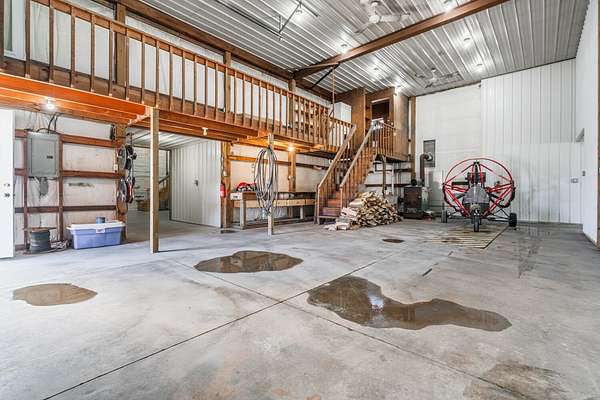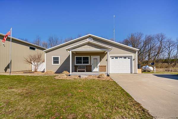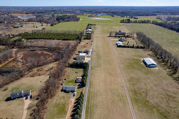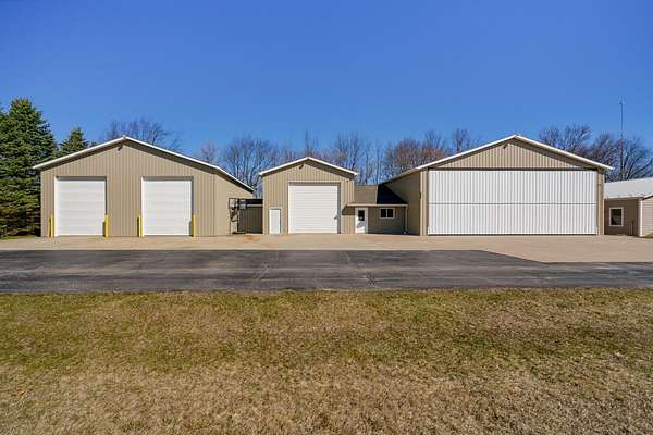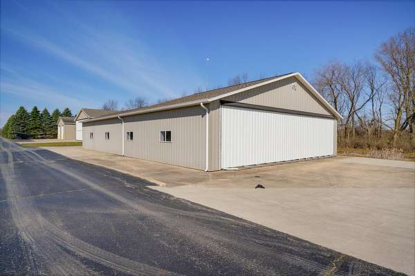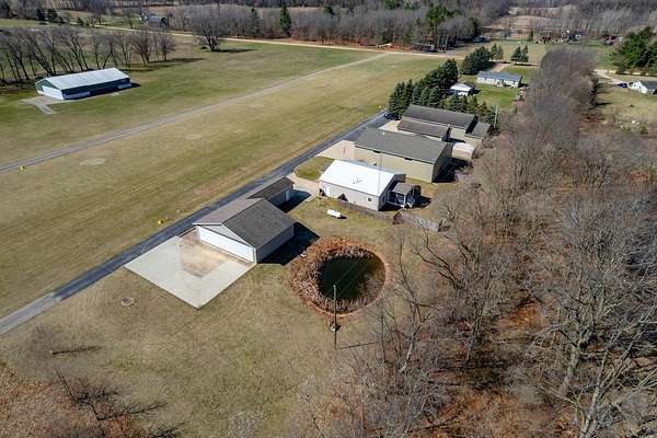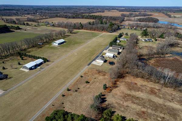 Welcome to Fairplains Airpark, a unique opportunity not only for pilots, but this would also be an ideal setup for auto enthusiasts, large scale hobbyists, collectors, artists or simply a great place to live while keeping all of your big toys safely stored indoors. We start with a sophisticated 2 bedroom, 2 full bath, ranch style home, built in 2005, with 8.59 acres, fenced backyard and a private pond. In front of the home is a 2000 foot grass runway that is shared with a very small group of neighbors. Inside, you'll find a large kitchen with an abundance of cabinets and storage. The kitchen is open to a dining area with fireplace and an enclosed porch. Entertainers will love the bar area that connects the kitchen and living room. The main bedroom has it's own bath, walk in closet and glass door to patio with electric in place for a hot tub. The home has an attached garage and a heated detached garage with attached hanger. On the other side of the home there is a series of 4 buildings. The first building is climate controlled with in floor radiant heat, 14' doors, 16' ceilings and a large loft area. A section of this building was used for indoor gardening. Walk through a short hall to the 2nd building that contains a mechanical shop with an oil change pit, crane beams, paint booth w/ventilation, compressed air system, wood stove, and another loft with a full bathroom and additional laundry. A beautiful office with heat and air connects the workshop to the massive final building. This last building is 41'x60' with a hydraulic scissor door and propane heat. All of these buildings were built to the highest of standards and are way above and beyond average. Just 27 miles from Grand Rapids.
