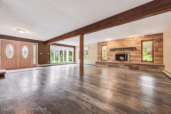 Discover this stunning 5-bedroom, 3-bath home in the heart of Jefferson Township, offering 3,190 sq ft of living space on a peaceful 2-acre setting. Classic charm meets modern updates, featuring large rooms, gleaming hardwood floors, and a striking floor-to-ceiling brick fireplace that serves as the home's centerpiece. The spacious kitchen and living areas flow seamlessly, perfect for everyday living or entertaining. Enjoy a resort-like backyard with an oversized in-ground swimming pool, a covered relaxation area, and plenty of space to take in the surrounding serenity. A spacious garage with a workshop area provides functionality. This exceptional property combines timeless style with today's comforts--an ideal retreat just minutes from local conveniences. Pool Not in working order