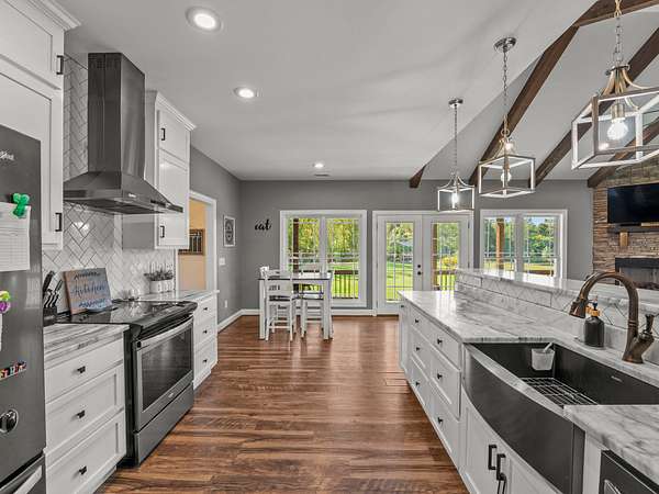 More than a home! This 2-acre retreat is where comfort, space, and style come together. Nestled on approx. 2.04 acres of peaceful countryside, this 5-year-old home blends charm and modern comfort. Vaulted ceilings with warm wood beams create an airy yet cozy atmosphere, centered around a stone fireplace perfect for gathering on cool evenings. The kitchen is both beautiful and functional, featuring solid surface countertops, stainless range hood, and a walk-in pantry to keep everything organized with ease. At the end of the day, retreat to the spa-like master suite, your private sanctuary designed for relaxation. The spacious covered back patio will be the place for all your entertaining. Here, every detail invites you to slow down, unwind, and truly feel at home!!