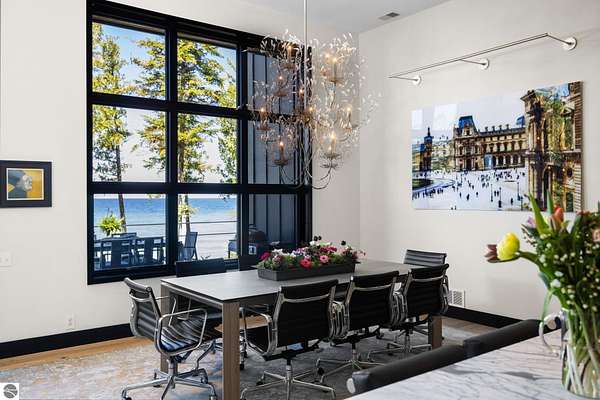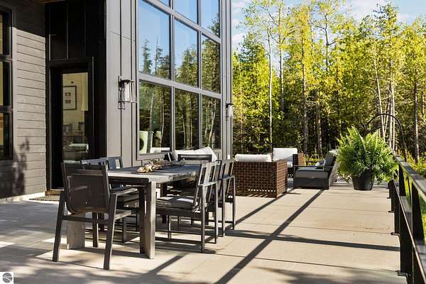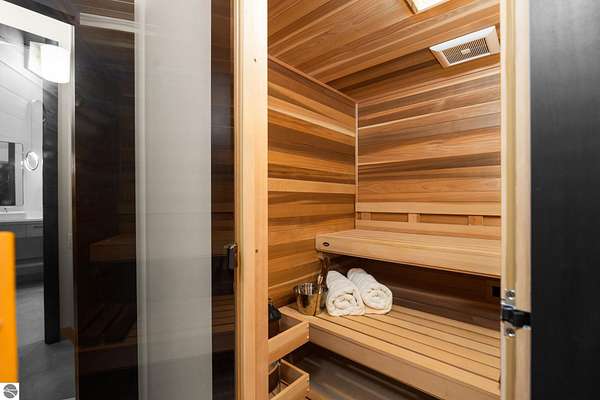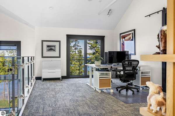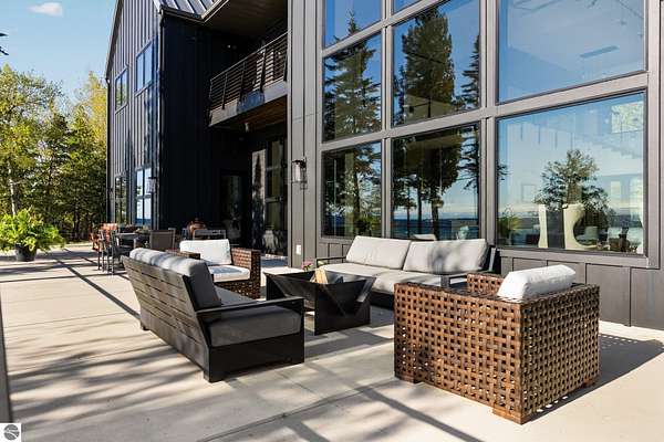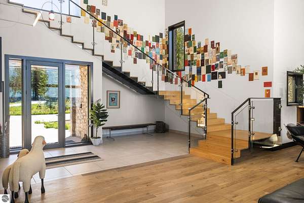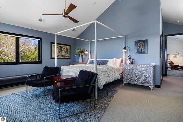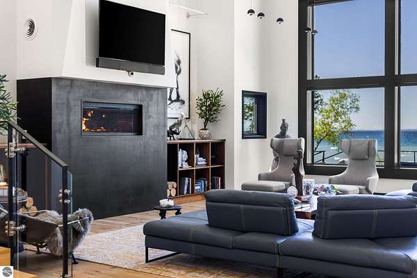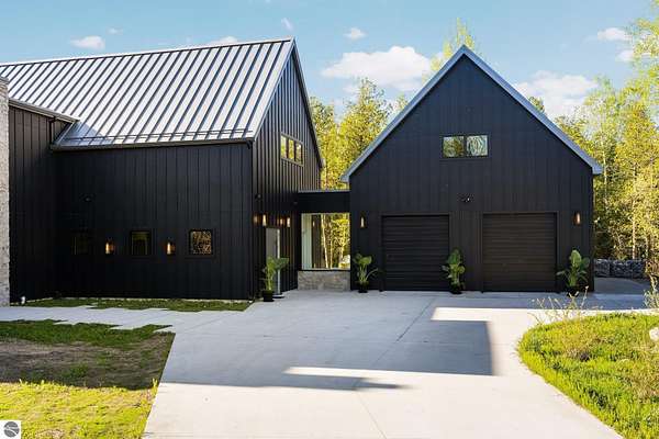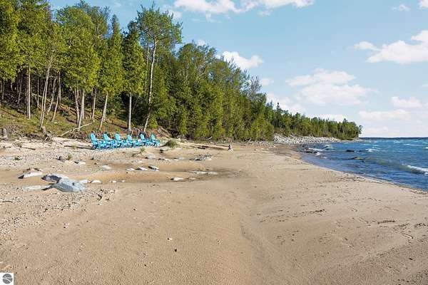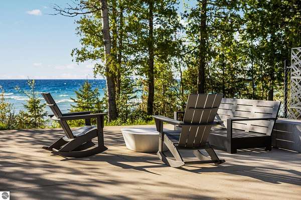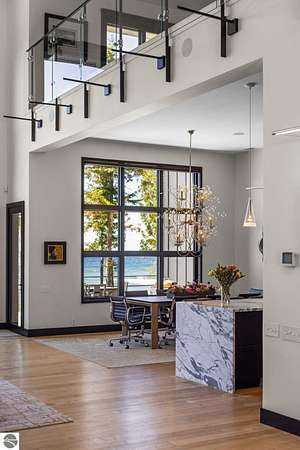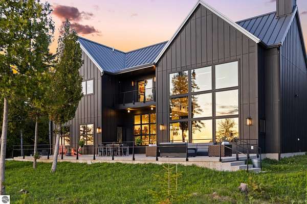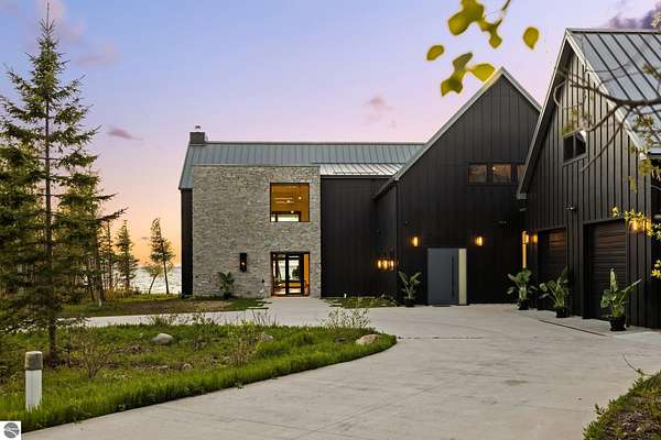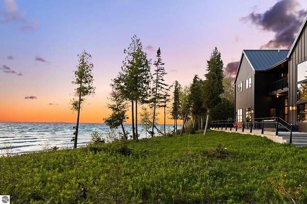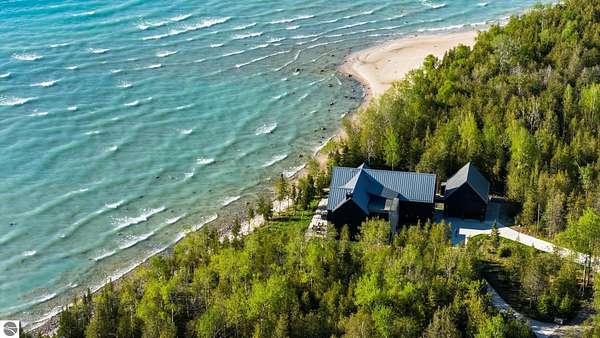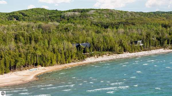 Every so often, a home comes along that's truly unforgettable. 9371 Onominese Trail is that rare opportunity - a once-in-a-lifetime lakefront estate with over 500 feet of private Lake Michigan shoreline, 6,000+ square feet of inspired living space, and a setting so breathtaking, it feels dreamlike. Set on 3 secluded, wooded acres, this west-facing property offers front-row views of spectacular sunsets and an abundance of natural light throughout the day. At the heart of the home is a chef-inspired main kitchen, complemented by a secondary catering kitchen for entertaining and everyday ease. The primary suite is a true retreat, complete with a spa-like en suite featuring a steam shower, elegant finishes, and tranquil views. Upstairs offers a luxurious guest suite, state-of-the-art media room, and private sauna - an ideal blend of relaxation and recreation. While the current layout includes two bedrooms, the media room's size and versatility offer potential for a three- or even four-bedroom configuration. Remarkably energy-efficient, the home's advanced geothermal system provides consistent year-round comfort with minimal environmental impact. Additional highlights include a dedicated art studio, sustainable design elements, and curated finishes that reflect modern sophistication and timeless style. Whether you're enjoying a quiet moment by the water, creating in the studio, or unwinding in the sauna, this home offers an extraordinary lifestyle shaped by comfort, creativity, and nature. With unmatched privacy, craftsmanship, and one of Lake Michigan's most stunning shorelines, 9371 Onominese Trail is more than a residence - it's an experience. The offering includes two parcels: one with the custom home, and the other a vacant, buildable lot - adding versatility, value, and future potential.