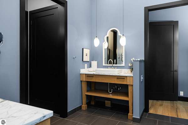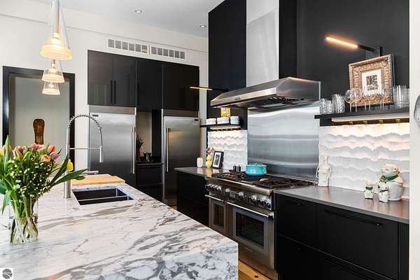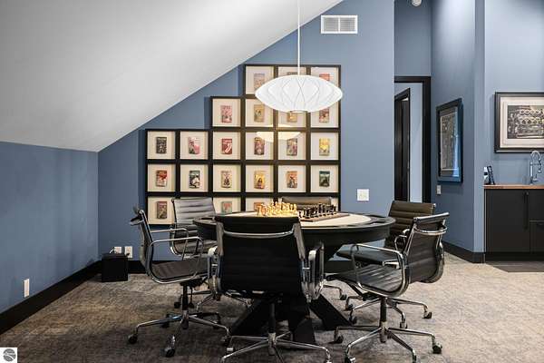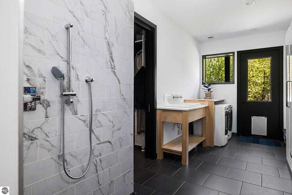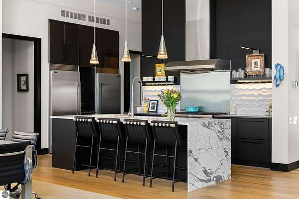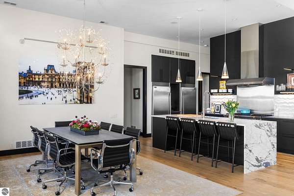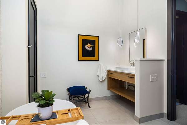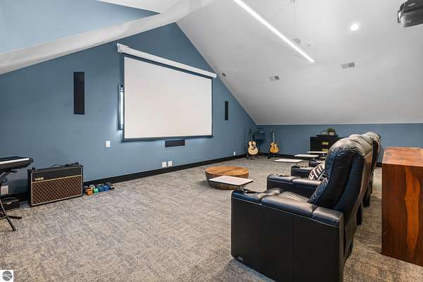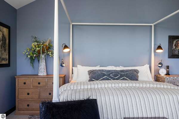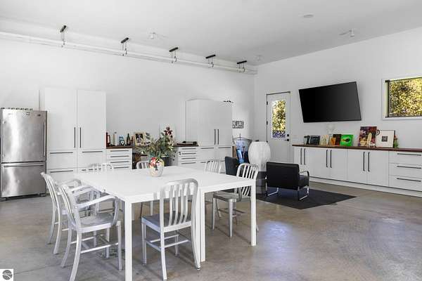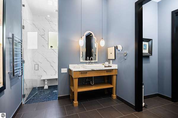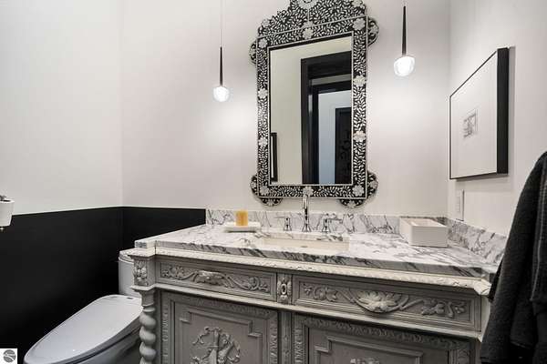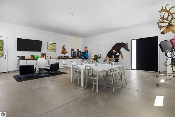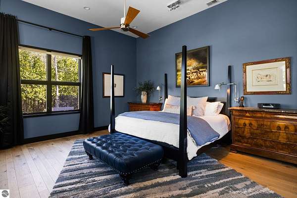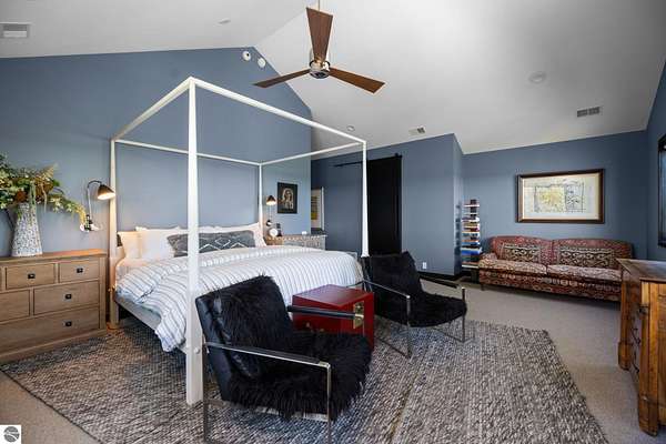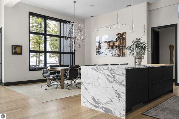 Every so often, a home comes along that's truly unforgettable. 9371 Onominese Trail is that rare opportunity - a once-in-a-lifetime lakefront estate with over 500 feet of private Lake Michigan shoreline, 6,000+ square feet of inspired living space, and a setting so breathtaking, it feels dreamlike. Set on 3 secluded, wooded acres, this west-facing property offers front-row views of spectacular sunsets and an abundance of natural light throughout the day. At the heart of the home is a chef-inspired main kitchen, complemented by a secondary catering kitchen for entertaining and everyday ease. The primary suite is a true retreat, complete with a spa-like en suite featuring a steam shower, elegant finishes, and tranquil views. Upstairs offers a luxurious guest suite, state-of-the-art media room, and private sauna - an ideal blend of relaxation and recreation. While the current layout includes two bedrooms, the media room's size and versatility offer potential for a three- or even four-bedroom configuration. Remarkably energy-efficient, the home's advanced geothermal system provides consistent year-round comfort with minimal environmental impact. Additional highlights include a dedicated art studio, sustainable design elements, and curated finishes that reflect modern sophistication and timeless style. Whether you're enjoying a quiet moment by the water, creating in the studio, or unwinding in the sauna, this home offers an extraordinary lifestyle shaped by comfort, creativity, and nature. With unmatched privacy, craftsmanship, and one of Lake Michigan's most stunning shorelines, 9371 Onominese Trail is more than a residence - it's an experience. The offering includes two parcels: one with the custom home, and the other a vacant, buildable lot - adding versatility, value, and future potential.