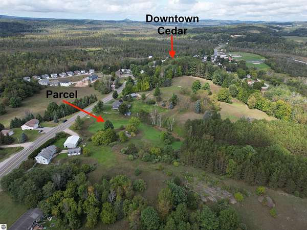 Discover a truly unique slice of the Up North just minutes from the heart of Cedar. This vacant parcel features an undulating landscape with areas of sloping and steep terrain, offering character and endless design possibilities. A buildable site awaits at the front of the property where an old barn once stood--perfect for capturing open countryside views. From there, the land gently slopes into a beautiful mix of pines and hardwoods that cover the back half of the property. A 33-foot easement runs along the northern border, leading back to the adjoining parcel behind. Follow this line and envision the possibility of tucking your home deeper into the trees for added privacy and a serene woodland setting. The property also includes a small wetland area where a pond once existed, adding natural beauty and habitat to your backyard. The location couldn't be more convenient. Just a short stroll or bike ride from Cedar's local favorites--Cedar Tavern, Buntings Market, and Blue Moon Ice Cream in the summertime. Every August, enjoy the lively Cedar Polka Fest with its dancing, authentic food, parade, and vibrant community spirit. Traverse City is less than 25 minutes away, keeping both work and play within easy reach. With no HOA or restrictive building guidelines--just township zoning requirements--you'll have the freedom to design a home that fits your vision. Whether you build at the front or create a tucked-away retreat in the woods, this parcel offers a rare combination of natural character, privacy, and proximity to everything living here in the Up North has to offer.