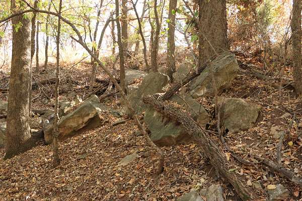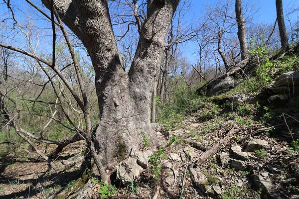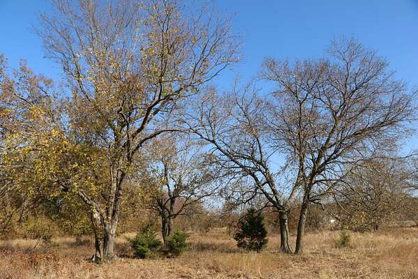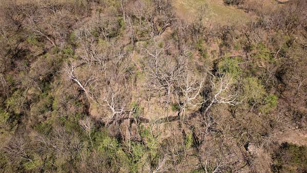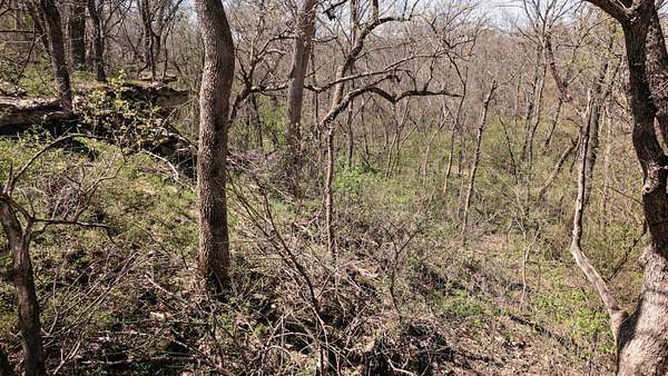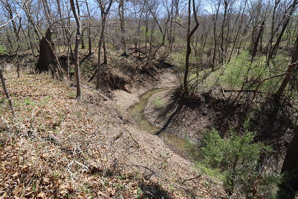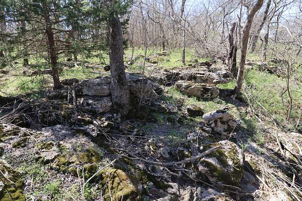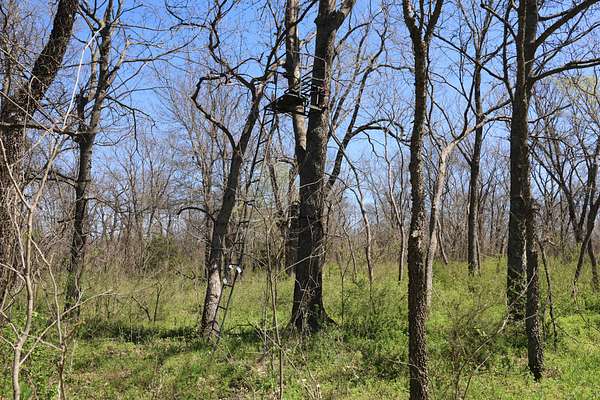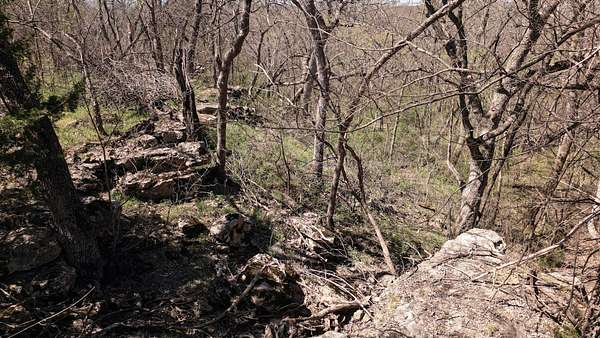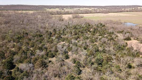 The property includes productive river bottom ground well-suited for cattle, hay production, or crop use, with additional potential for further agricultural or recreational improvements. The balance of the acreage is made up of heavy hardwood timber, wildlife habitat, limestone outcroppings, and native pastures—creating ideal conditions for whitetail deer, wild turkey, and other native wildlife that thrive in this region. The diverse landscape and topography range from fertile bottomlands to elevations in the mid 500’ to mid-600’ range, providing scenic appeal. Large limestone outcroppings add character and offer elevated vantage points with views overlooking the Verdigris River Valley and the massive virgin timber stands towering below.