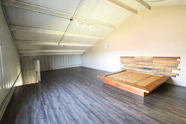 The main floor includes two full bathrooms and the option for a second bedroom. Upstairs, the primary suite offers a full bath, large walk-in closet, laminate hardwood flooring, and a vaulted ceiling that creates a nice open feel that creates a large spacious room.