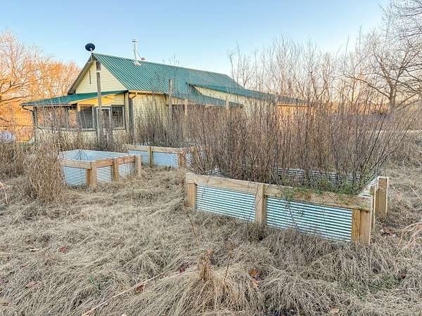 The land features Cowskin Creek frontage, water views, large field, and gently usable acreage ideal for gardens, animals, or recreation. A private well supplies water, and two propane tanks serve the improvements. County road frontage provides access while maintaining a secluded, rural feel just west of Ava.