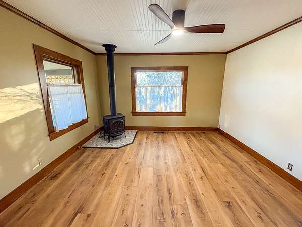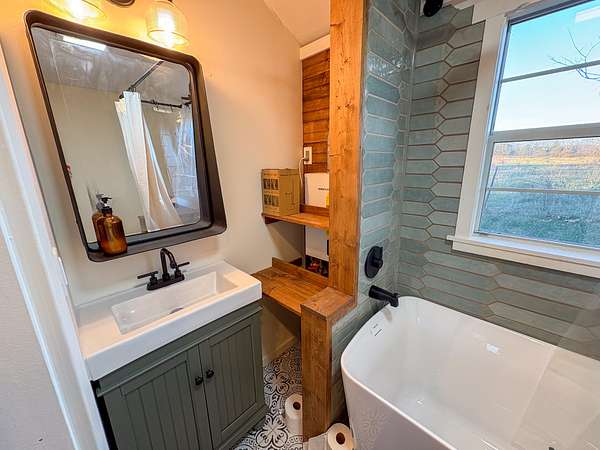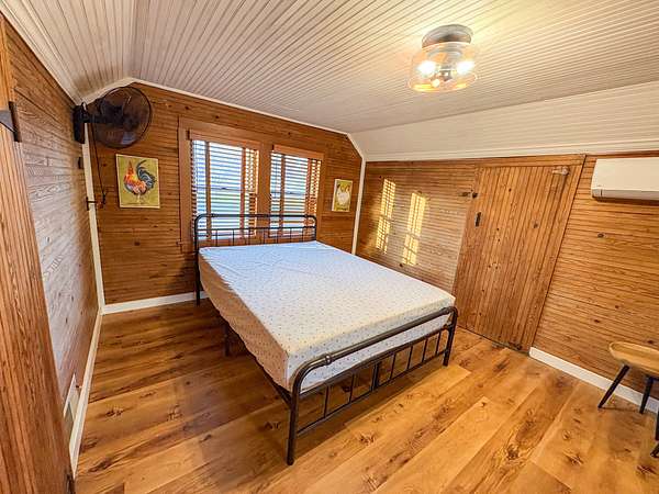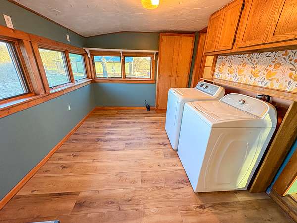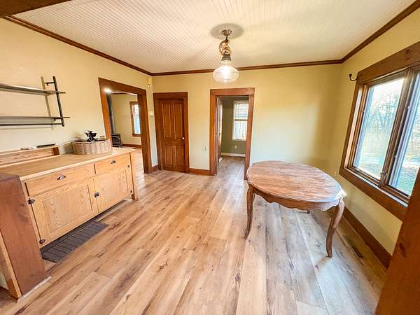 The main 1935 farmhouse offers approximately 1,257 square feet, 2 bedrooms, and 2 full bathrooms, luxury LVP flooring, a kitchen/dining combination, main-floor laundry, and covered porches--including a 10x19 screened porch--create a comfortable, livable home with classic farmhouse appeal. Heating options include central heat, mini-splits, wood stove, solar assist, and central air for cooling. A partial unfinished basement with interior access provides additional storage and utility space.