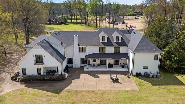 Set on 4 private acres in Collierville this one-of-a-kind luxury estate home blends space, sophistication, and modern functionality - ideal for multigenerational living, large families, or grand-scale entertaining. Beautifully renovated within the last 18 mo, this ~ 10,000 sf home offers 9 bedrooms and 9.2 bathrooms. The main-level luxury primary is a private retreat featuring an all new spa-inspired bath & sitting area with fireplace. 2nd downstairs Primary with private entry is perfect for in-law suite! Fully renovated kitchen and all bathrooms, new hardwood floors throughout, 10ft ceilings and elevated designer finishes. Multiple flexible living spaces on all three levels: first floor study, second floor large media room, workout room, and expansive third-floor bonus area. 2 Laundry rooms on first and second floors. Privacy and security is enhanced with a gated entry, long drive, and side-load garage. 4 acres offers endless potential for outdoor living & entertaining!