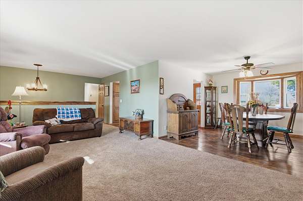 Situated on 12 acres, this equestrian hobby farm offers a 1,300 sq ft home with 4 bedrooms and 2 full baths. Built in 1972, the home features a large family room, formal dining area, partially finished basement, attached garage, covered front porch, and deck. A 24'x24' detached 2-car garage includes a cement floor and electric overhead door. Equestrian amenities include a 36'x72' horse barn (built 2015) with a 12' cement aisleway, four 12'x12' stalls, two 12'x24' stalls, feed room, wash rack, hay loft, water, and electric. Additional structures include a 30'x40' equipment barn with cement floor and 220V outlet. Property features include two hay fields, two paddocks, a large pasture, two run-in sheds, outdoor arena, perimeter bridle path, electric to the pasture, and a frost-free hydrant. WANT MORE INFO? Click the Virtual Tour link which has much more detailed information, an enhanced photo gallery and a property video! Do not go to the property without an appointment.
