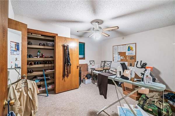 - Attic Storage, Blinds, Built-Ins, Ceiling Fans, Drapes, Eat-in-Kitchen