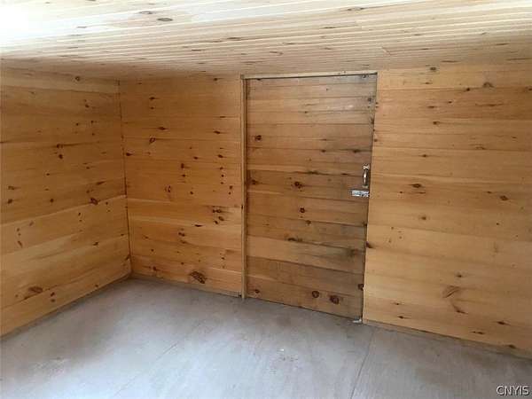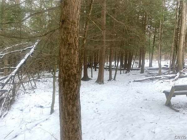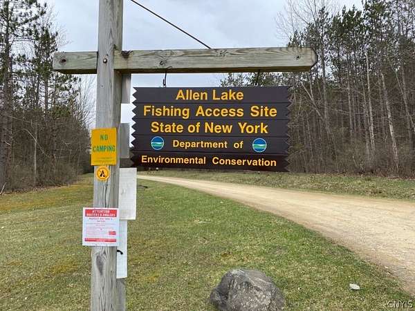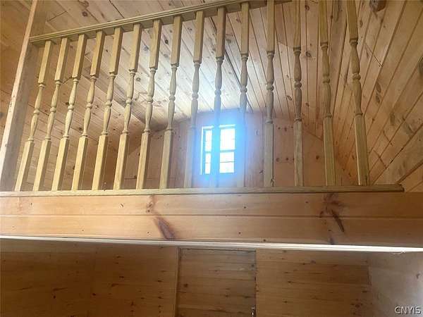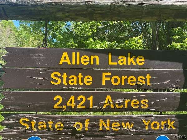 This off-grid cabin sits on 6.05 wooded acres and is located near Allen Lake in Allen NY, Allegany County. The property features a healthy mix of mature pine and hardwood trees with abundant signs of wildlife throughout the land. An existing dirt drive runs through the property. The cabin has a covered front porch. Inside, the walls and ceiling are finished with knotty pine boards. There is also a small loft area for sleeping or storage. Located a short drive from Allen Lake State Forest and Allen Lake which is known for canoeing, kayaking, and fishing. The DEC stocks Allen Lake annually. Picnic areas are also available. The property is located on a maintained year-round road with electric and fiber optic available at the roadside. All rights convey.