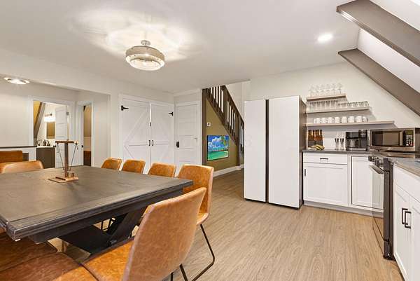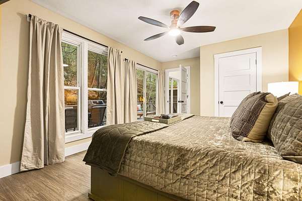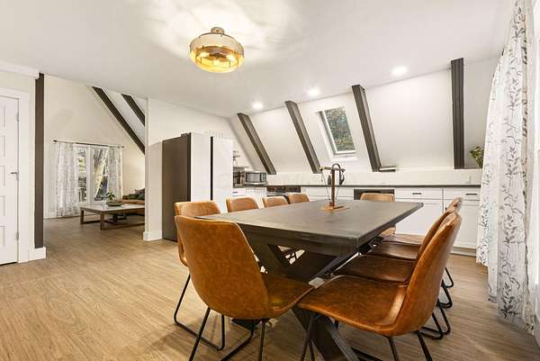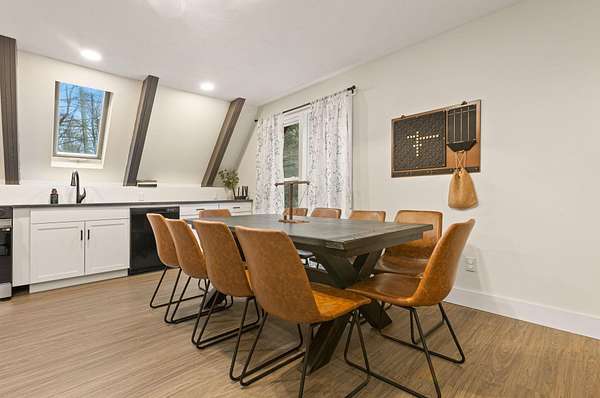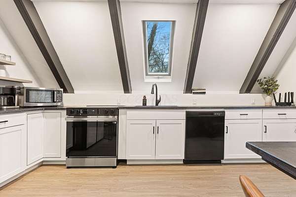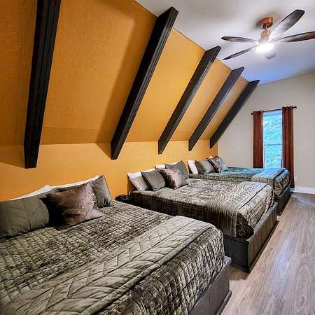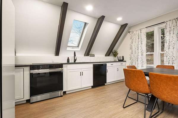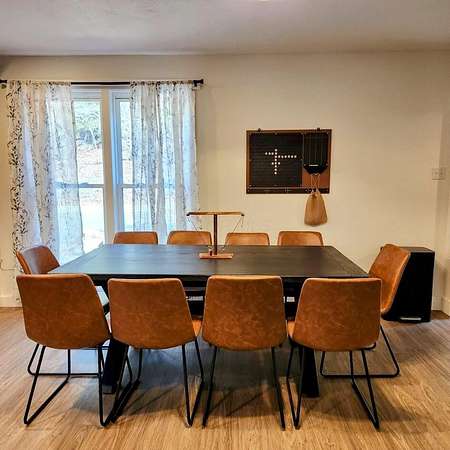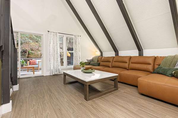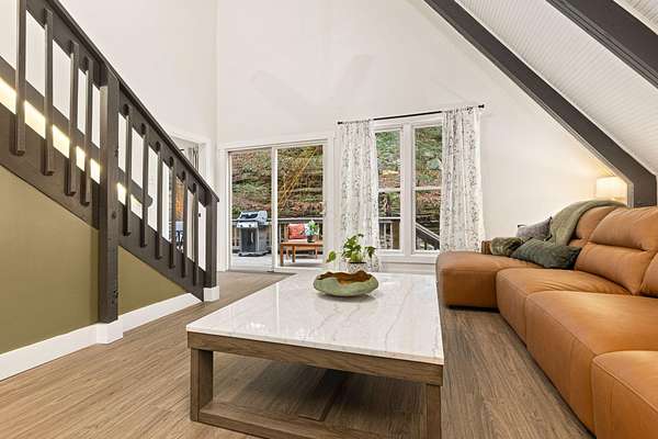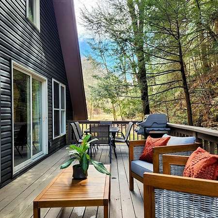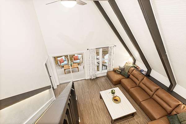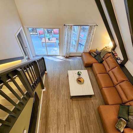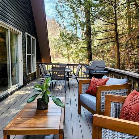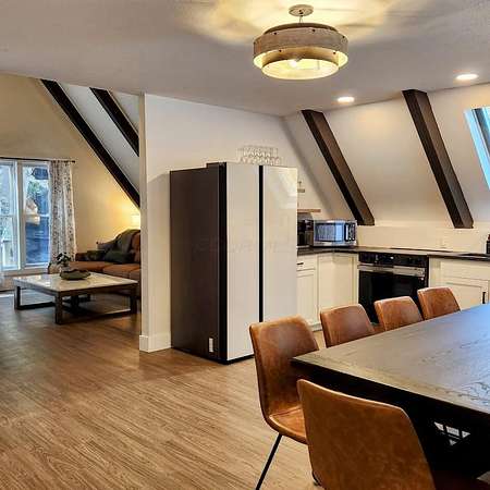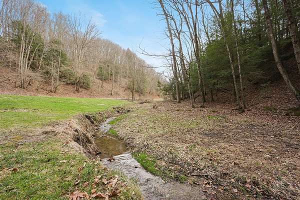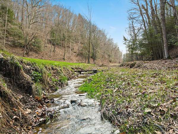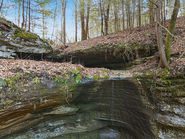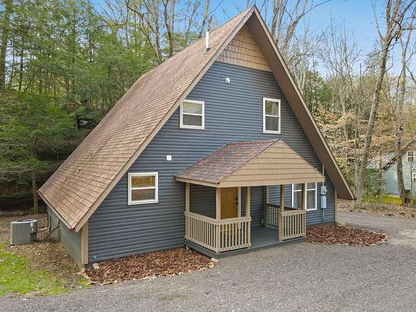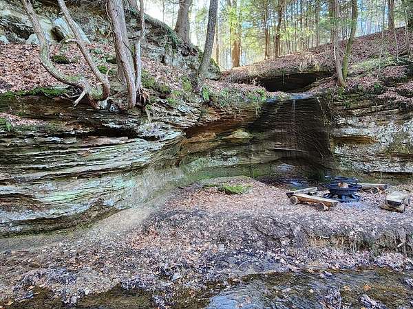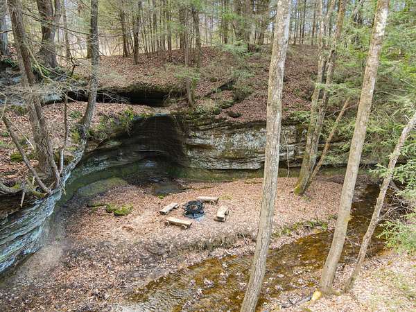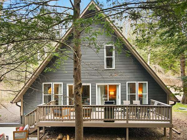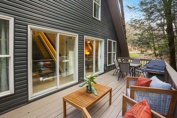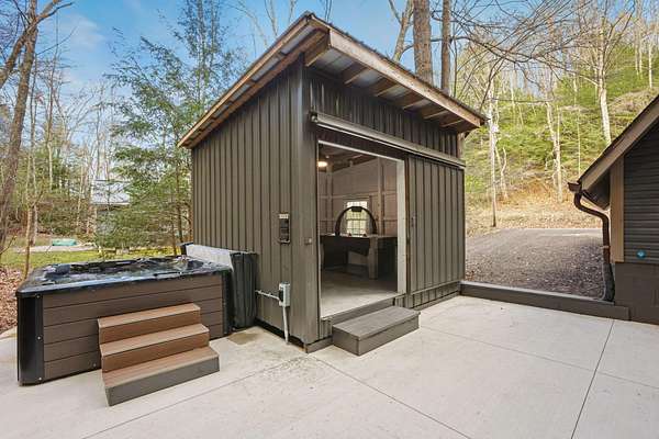 Discover RockFall Retreat, a breathtaking A-frame cabin nestled among striking rock formations with a seasonal waterfall and creek just steps from the back door. This fully furnished, turn-key property is a rare opportunity to own a nature-rich getaway as a short-term rental. The sale includes all furnishings and existing bookings, making it a turnkey investment. Boasting 4 spacious bedrooms and 2 full baths, the home comfortably sleeps up to 12 guests. Inside, you'll find a warm and inviting open-concept living space with soaring cathedral ceilings, a fully equipped kitchen with seating for 12, and direct access to the outdoor patio. The layout includes two king bedrooms on the main level-one with private patio doors-a cozy upstairs queen room, and a large bunk-style room featuring three queen beds, a TV, and a mini basketball hoop. Outside, enjoy a private hot tub overlooking the stunning rock formations and waterfall, or gather around one of two firepits for evenings under the stars. The spacious patio includes a dining area, seating, propane grill, and a smokeless firepit. A separate game shed offers endless entertainment with air hockey, foosball, cornhole, croquet, giant yard games, and more. With direct access to a scenic creek, this property provides the perfect balance of adventure and relaxation. Located just minutes from Hocking Hills and Clear Creek Metro Park, RockFall Retreat is ideal as a private escape or an investment opportunity with strong rental potential. Don't miss your chance to own this extraordinary property-schedule a showing today. Agent/Broker owned.