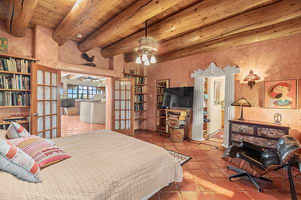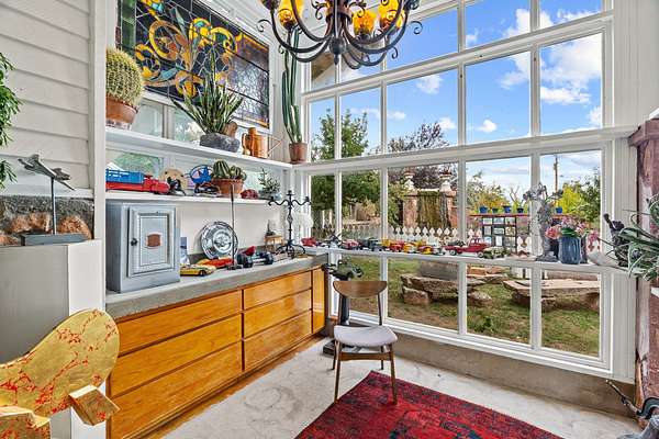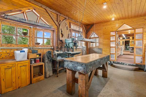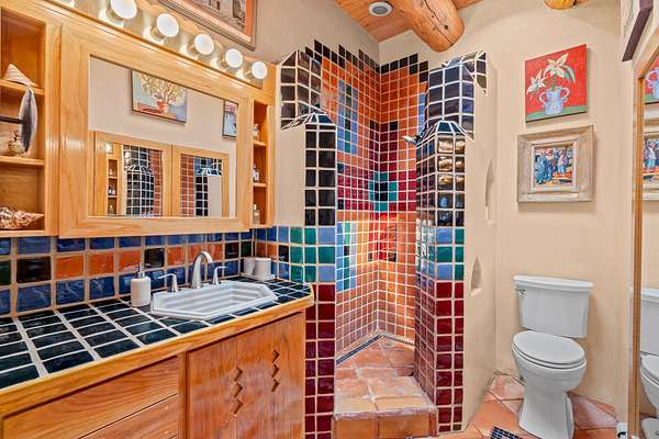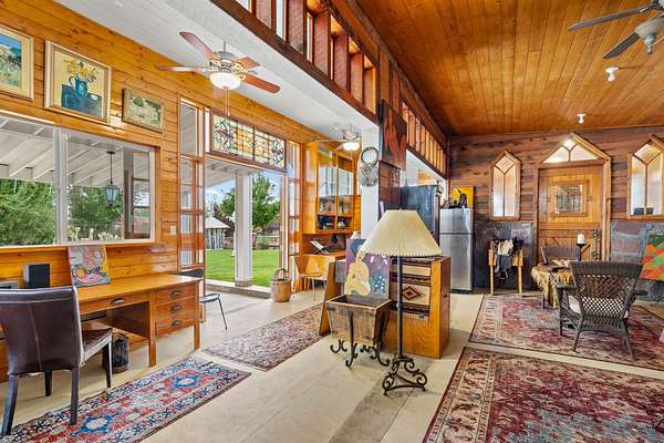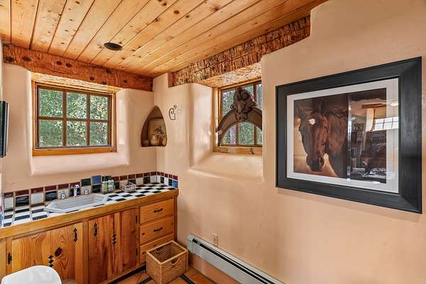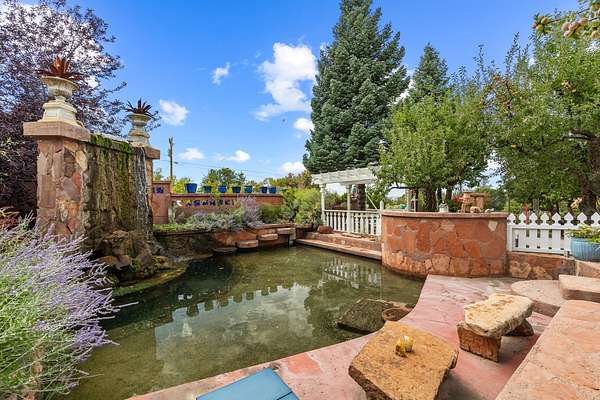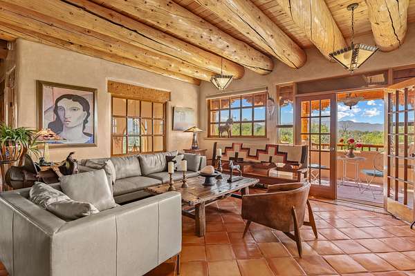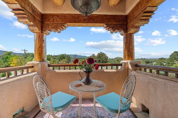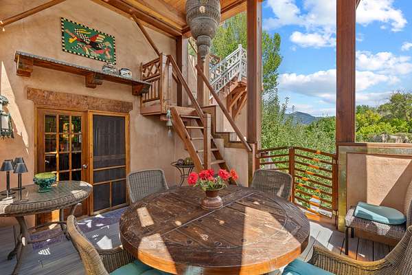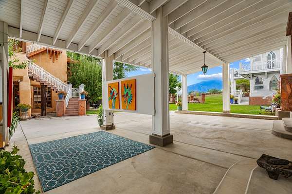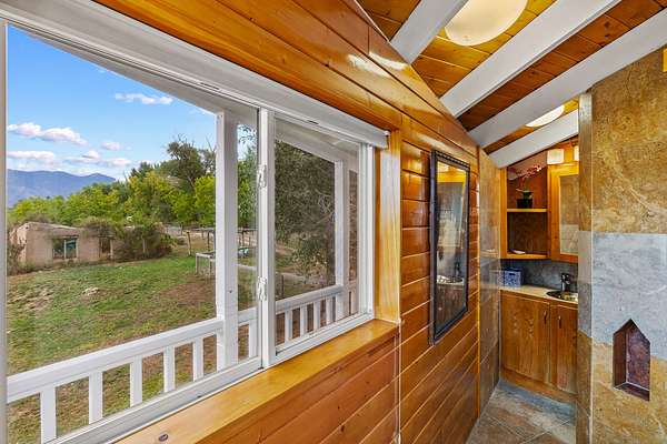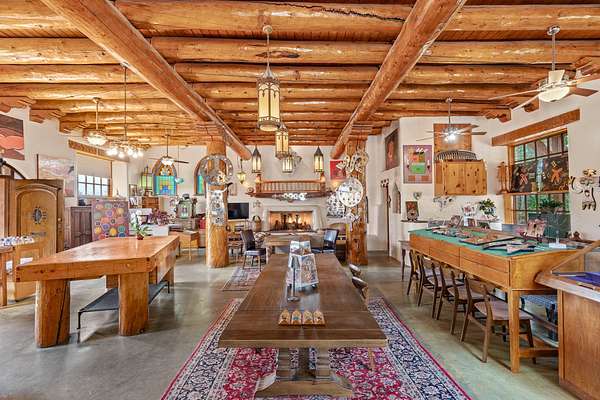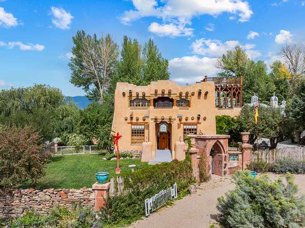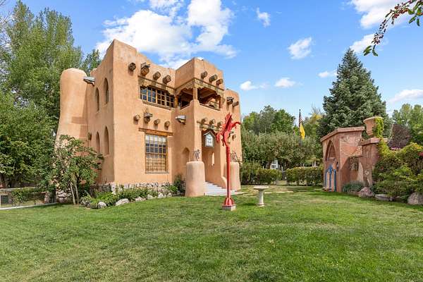 A rare and soulful Northern New Mexico compound, this extraordinary property blends history, artistry, and lifestyle in a way few offerings can. Created by acclaimed Sculptor Thom Wheeler, the main home and gallery spaces are built of authentic adobe and defined by massive pine vigas harvested from Wheeler Peak and hand-hewn by Wheeler himself. Throughout the property, irreplaceable architectural details and storied artisan pieces create a setting of warmth, character, and distinction, including stained glass windows sourced from churches across America and the original fight bell from Madison Square Garden. The main residence offers 2 bedrooms and 2.5 baths, while the guest house features 2 bedrooms and 2 baths with separate private entrances, creating flexibility for extended living, guest accommodations, boutique hospitality, or a refined live/work compound. Rich with heritage, the property also includes an adobe structure dating to 1840, built by Juan Santistevenson, adding yet another layer of authenticity and cultural significance. Set on two separately deeded lots totaling nearly 1.7 acres, the grounds are equally captivating. A 3 acre-foot well, surface water rights, and an acequia running through the property enhance both beauty and value. Near the acequia, an outdoor kitchen and entertaining area create an unforgettable setting for gatherings beneath the New Mexico sky. Zoned for both residential and commercial use, the possibilities are exceptional: an elegant private residence, gallery or studio compound, boutique inn or B&B, event venue, or investment opportunity with future subdivision potential. Timeless, inspiring, and deeply rooted in place, this is more than a property-it is an experience.