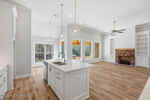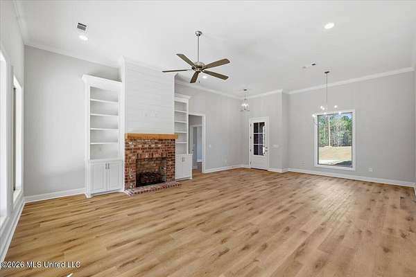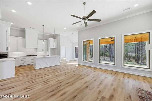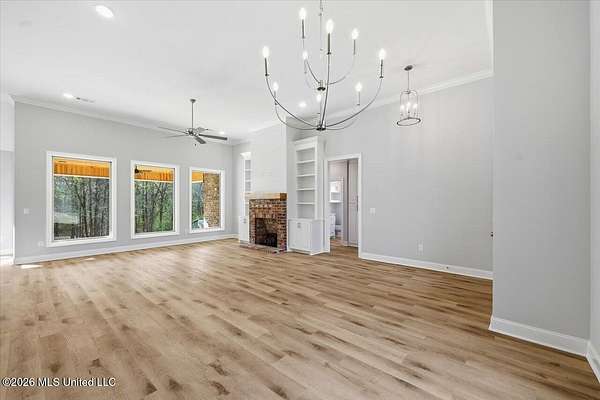 Well-designed new construction on 3.71 acres in Mullican Place of Florence, this 4 bedroom, 3 bath home offers quality craftsmanship and a light, bright, open design. Limited Time Offer (available on select homes only, and this one qualifies). The Builder is offering $10,000 in concessions that Buyer may use to apply towards closing costs, interest rate buydown fees, or buyer-selected upgrades such as fence, window treatments, additional appliances, and/or gutters. Inside, you'll love the tall ceilings and oversized windows, along with a main dining area, cozy breakfast nook, and built-ins around the fireplace that anchor the spacious living area. The kitchen is both functional and sharp with ample storage, glass-front accent cabinets, a cooktop, built-in oven, pantry closet, and a large island for prep space and gathering. One of the best features of this plan is the private hallway off the kitchen that leads to the 4th bedroom and 3rd full bath, set apart from the primary suite and separate from the other secondary bedrooms, making it ideal for guests, a home office, or multi-generational living. The primary suite features a semi-vaulted ceiling, a large walk-in closet, and a comfortable bath with dual vanities, a soaking tub, and a custom tiled shower with a rain showerhead. Luxury vinyl plank flooring, quartz countertops, and sleek modern colors finish out the interior. Out back, enjoy a large covered patio overlooking a partially wooded yard with a very deep lot that extends far into the wooded area, including a portion that the builder mulched to create usable wooded space; to give you an idea of the depth, one side of the lot runs approximately 922 feet deep and the other side approximately 1,206 feet deep. Note: Landscaping and sod are expected to be installed within the next week or two, and the concrete and exterior will be pressure washed and cleaned up, so check back for updated photos.