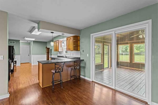 This very nice 3 Bedroom, 1 1/2 Bath Stone Ranch features large Living Room, fully applianced Eat-in Kitchen with Breakfast Bar, separate Dining Room/Family Room combination. Huge 3 season Sun Room overlooking beautiful wooded view. 2 car attached garage along with 50 x 30 Pole Barn. All situated on 2.25 acre country lot in Eastern School District.