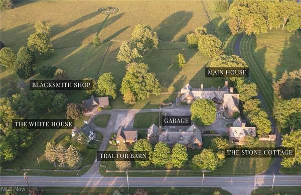 Set across 27 sweeping acres in prestigious Waite Hill, 9391 Hobart Road is more than a home-it's a lifestyle compound with limitless possibilities. Gated and grand, the English Country Estate unfolds from a genteel cobblestone courtyard into a private world of historical allure, architectural richness and pastoral beauty. At the heart of the estate is a one-of-a-kind residence, masterfully transformed from an original stable into a sophisticated English Tudor with striking scale, rich textures, and incredible historical details like hand-hewed beams, hand-chiseled stone, leaded glass windows and original wrought iron fixtures. Two additional guest cottages-The Stone Cottage and The White House-provide flexibility for extended family, guests, or creative use. An eight-car garage, dairy barn, two-story indoor squash court, blacksmith's shop, and tractor barn offer incredible infrastructure for equestrian, agricultural, or bespoke lifestyle pursuits. The grounds are nothing short of breathtaking-over 27 acres of open pastures and fence-lined fields create an atmosphere of peace, privacy, and potential. Whether your vision is a multi-generational retreat, a working homestead, or a showstopping primary residence, this incredible enclave offers the unique foundation to bring it to life. This extraordinary estate has been chiseled by history and is now ready for its next chapter to be crafted by your imagination.