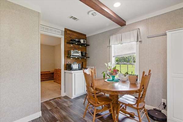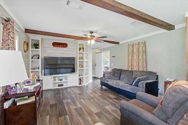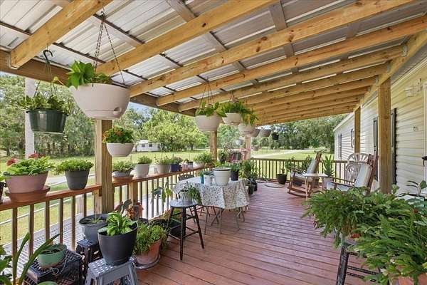 UPDATED PHOTOS Charming 3BR/2BA Single Wide on 10 Sprawling Acres - Bonus Brick Home with Rehab Potential! Escape to the peace and quiet of country living with this beautifully maintained 14x90 single wide mobile home, nestled on 10 scenic acres shaded by towering granddaddy oaks. This spacious 3-bedroom, 2-bath home features a desirable split floor plan, beamed ceilings, a large kitchen island, and a separate laundry room for added convenience. Step outside and enjoy your morning coffee on the covered porch, or park with ease under the two-car detached carport. A paved driveway adds extra appeal and practicality. In addition to the mobile home, the property includes a second dwelling--a brick home with water damage that offers incredible potential. With some rehab, it could serve as a rental, guest home, or multigenerational living space. The land is ideal for pets, farm animals, gardening, or simply enjoying the natural beauty and tranquility of rural life. Whether you're looking for a quiet homestead or an investment with room to grow, this property offers endless possibilities! Call today to schedule your private tour of this unique property!