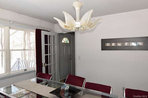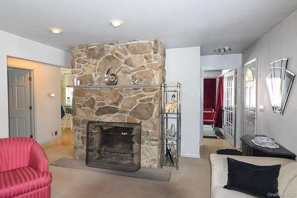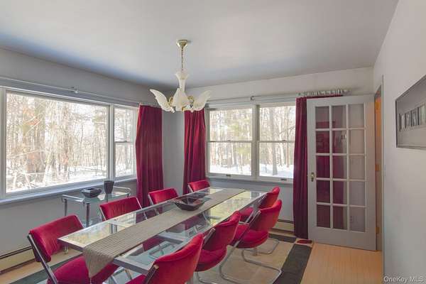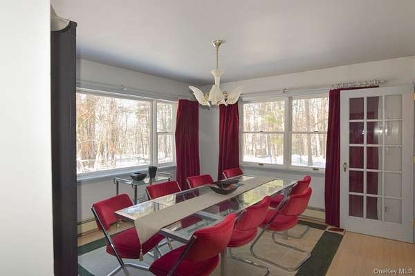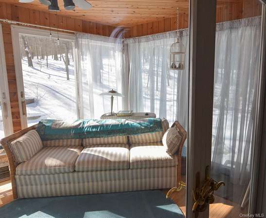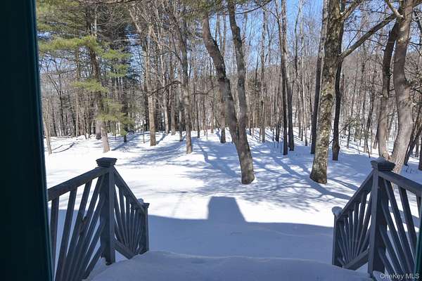 Set on 3.04 picturesque acres and embraced by a rich mix of mature trees, this charming three-bedroom, two-bath Cape offers the kind of privacy and tranquility that's increasingly hard to find. Sunlight pours in through the many windows, creating a bright, uplifting interior and constant connection to the surrounding landscape. The welcoming living room features a classic bay window and a striking stone fireplace, the perfect setting to curl up beside a crackling fire on a crisp winter evening. French doors lead to the formal dining room, where windows on two walls frame peaceful views and provide a beautiful backdrop for gatherings with friends. Just beyond, the eat-in kitchen flows seamlessly into a glass-enclosed sunroom, an inviting space for morning coffee, afternoon reading, or simply soaking in the changing seasons. The first floor offers convenience and flexibility with one of the three bedrooms, a full bath, and laundry. Upstairs, the main bedroom suite feels like a private retreat, complete with a vaulted ceiling, direct bath access, and its own deck, an ideal spot to greet the day or unwind under the stars. The third bedroom, enhanced by a skylight, is partially finished and ready for your personal touch. A two-car garage is tucked beneath the home, providing ample storage and practicality. When spring arrives, the property truly shines, enjoy quiet walks through your own wooded surroundings, watch the leaves turn vibrant green, and listen to birdsong carried on the breeze. With no through road, the setting is exceptionally peaceful, a serene haven to call home. In less than fifteen minutes, you will be in the village where you can explore the many unique shops and enjoy a variety of cuisine. Sold AS IS