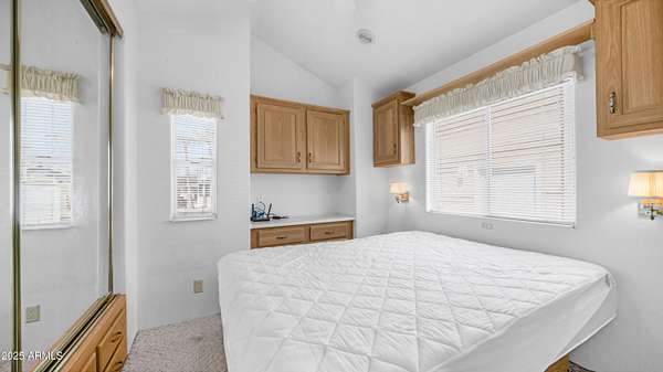 Welcome to your desert dream retreat--where the sun shines brighter, the skies stretch wider, and the lifestyle feels like a year-round vacation! If you're looking to soak up the best of Arizona's outdoor living while owning the land beneath your feet, this gem in the coveted 55+ resort-style community of Golden Vista is calling your name. Tucked away in a meticulously maintained neighborhood, this charming home is a perfect blend of style, comfort, and low-maintenance living. The home welcomes you with vaulted ceilings and an open-concept kitchen and living area that's bathed in natural light, creating a bright and airy atmosphere that's perfect for everyday living or entertaining. Step outside and enjoy mountain views from the front, or unwind on the private back patio complete with stylish pavers with an ideal spot to relax and soak up the desert serenity. The spacious bathroom offers generous counter and storage space, and the detached shed provides room for extra storage or even a creative hobby corner. With a newer roof, updated AC, double-paned windows, and excellent insulation, this home is energy efficient and move-in ready. Best of all, you own the land, no lot lease here! Life at Golden Vista is more than just comfortable living; it's an active, vibrant lifestyle. From the fitness center, heated pool and spa, and woodshop to the sewing club, library, softball team, and countless other activities, there's truly something for everyone. This is more than a home, it's a community where friendships flourish and every day brings new possibilities. Come see what makes Golden Vista so special you may never want to leave!