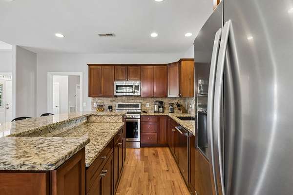 - Dishwasher, Gas Range, Ice Maker, Microwave, Refrigerator, Stainless Steel Appliance(s)