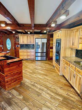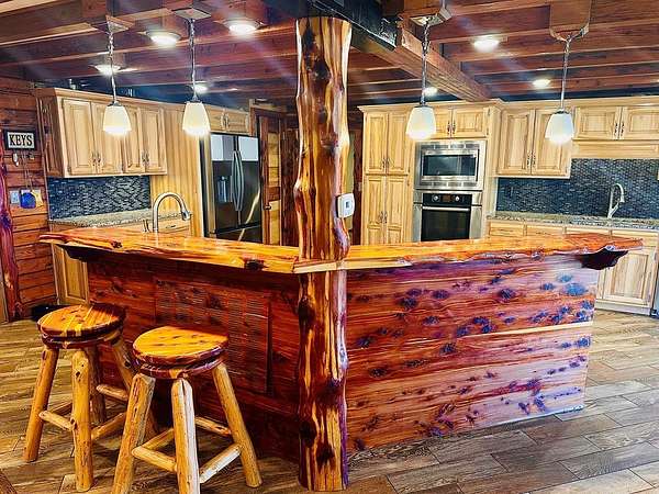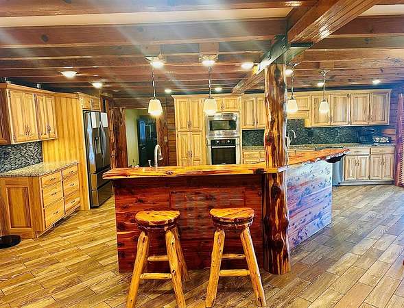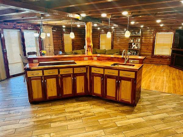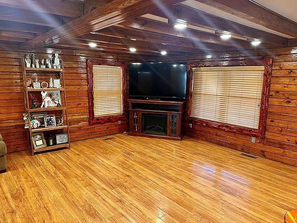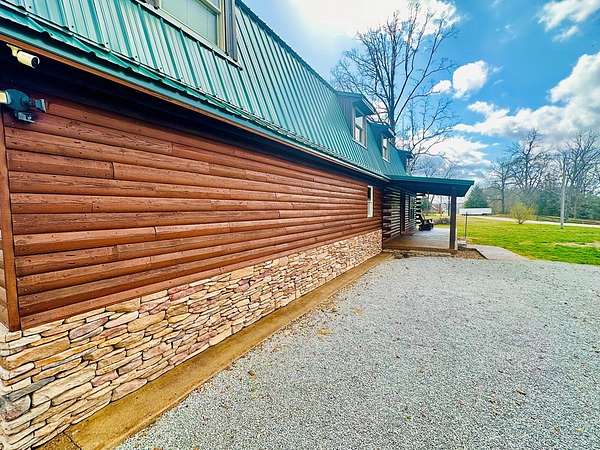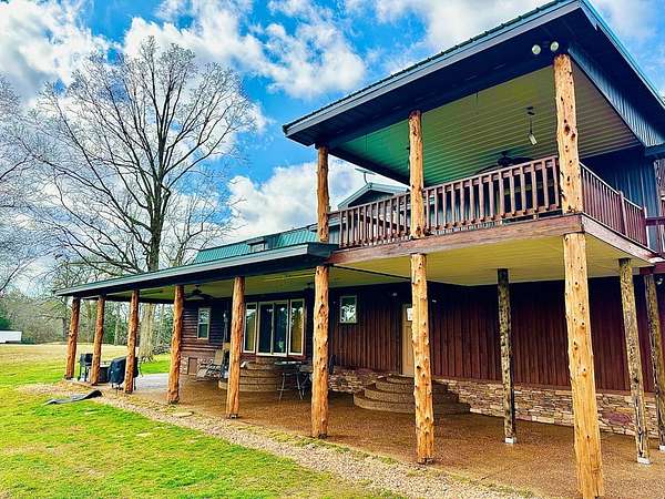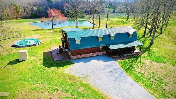 OPEN HOUSE 4/11 from 11-2!! Stunning sportsman's paradise sitting in 20+ acres with 2 fully stocked ponds! An additional 25 acres is available! This one of a kind custom home reflects a true barndominium mixed with a luxury log cabin! Window trim, door frames and stairs made out of cedar! Custom island made from cedar and hickory are all hand crafted. Beautiful stainless steel appliances with a black granite tile backsplash. Laminate hardwood flooring with custom log piers and exposed beams in the main rooms. Bedroom on the main floor with a private entrance. The extra room could easily make a 4th bedroom. The master is upstairs and has an open floor plan and also has a large private deck overlooking the large pond and private above ground pool! There is a very large shop with multiple bays and office. Every modern amenity is available! Brand new roofs! Tankless water heater, home recently stained! Well & public water! Land is gently rolling and perfect for hunting!