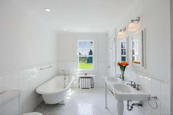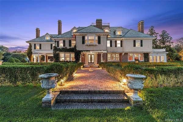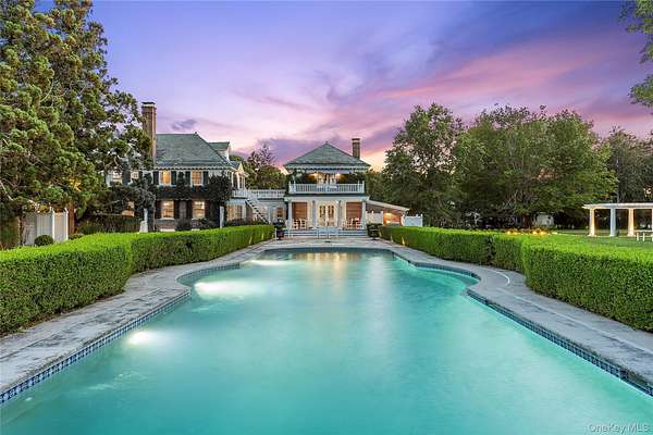 No need to leave this expansive and totally private resort-like gem, set on nearly 6 acres of stunning Estate grounds south of the highway. This gorgeous circa 1908 mansion has exquisite period details and modern conveniences - including multi-zone central air conditioning, Sonos sound system throughout the house, and wifi - that have been tastefully integrated into this showcase home. This 13,000 sq. ft. home features a grand foyer with double staircase to second floor, a formal living room and dining room, each with a fireplace, a spacious custom-designed eat-in kitchen, marble butler's pantry, library, wine cellar and screened-in summer porch. The primary suite and additional 5 guest bedrooms en suite are on the second level with a separate guest wing with 3 bedrooms, 2 staff rooms, baths and the summer primary suite overlooking the pool. On the third level you'll find the playroom, the billiard and game rooms with a dedicated poker room, a handsome bar with ice maker and additional bedrooms and bath. A charming "Summer Kitchen" with a stylish and fully equipped bar with ice maker, pizza oven, pool and pool cabana, with separate shower and changing room for guests - all perfect for outdoor entertaining! Elegant 25' x 75' semi-Olympic heated gunite pool, 10 person spa, all weather tennis court, regulation size bocce court, expansive lawn with sprinkler system, lush gardens and gated property for total privacy...all in the heart of the Village, overlooking the Quogue Field Club and Dune Road. Additionally, the estate is conveniently located near Gabreski Airport, accommodating private jets of any size, making it an ideal retreat for discerning guests seeking both elegance and convenience. There is simply no other property like it in Quogue!