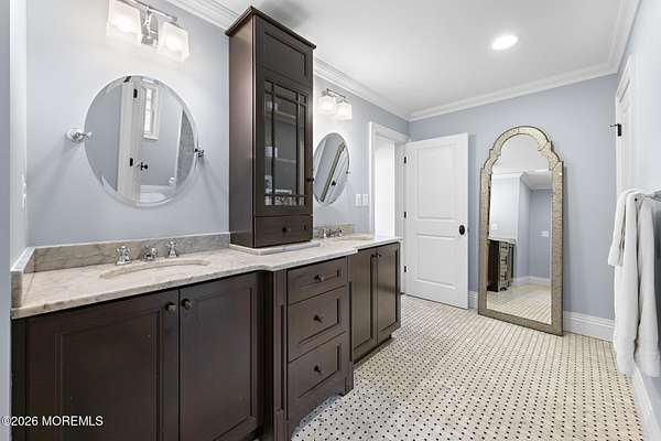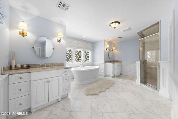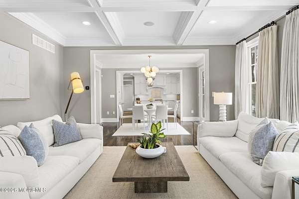 This is a coming soon listing and cannot be shown until Saturday, 2/21. Perfectly situated on 1.5 private acres this refined residence combines elegant design, abundant natural light, and meticulous craftsmanship. The home blends effortlessly with its natural surroundings, uniting timeless style with modern comfort. This 4-bedroom, 5-bath home features an open floor plan, gleaming hardwood floors, and a neutral color palette that enhances the sense of light and space. A first-floor office provides an ideal setting for work or study, blending functionality with the same understated elegance found throughout the home. The chef's kitchen is a showpiece, boasting Carrara marble countertops, a large center island, Thermador double ovens, a cooktop, Bosch dishwasher, and a v-groove wood ceiling all open to the bright, sun-filled family room. Spacious bedrooms exude comfort and style, while all baths are appointed with Carrara marble countertops and marble flooring. The fully finished basement provides additional living and entertaining space, ideal for today's lifestyles. Front and rear bluestone porches extend the living areas outdoors, offering peaceful spaces to relax or entertain. Ideally located just minutes from beaches, top rated schools, dining, direct NYC transit, and the Seastreak high-speed ferry delivering the best of coastal serenity and city convenience.