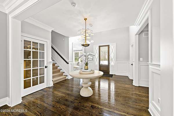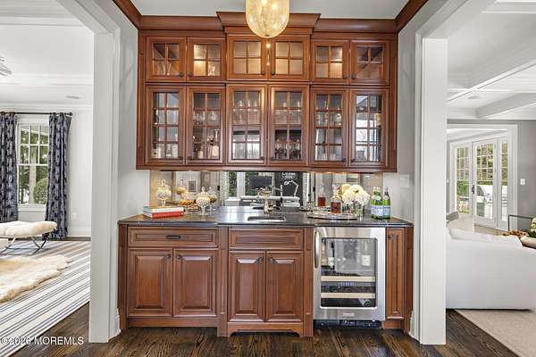 - 9 Ft+ 1 st Floor Ceilings, Attic, Beamed Ceilings, Built-In Features, Center Hall, Dec Molding, Pull Down Stairs Attic, Recessed Lighting, Wet Bar