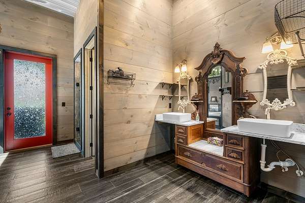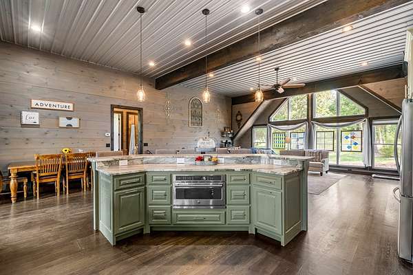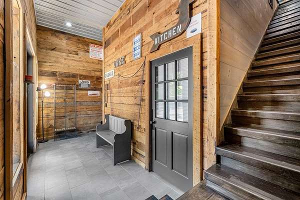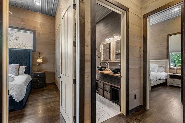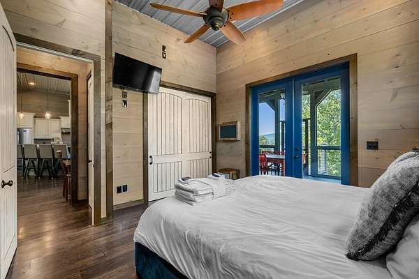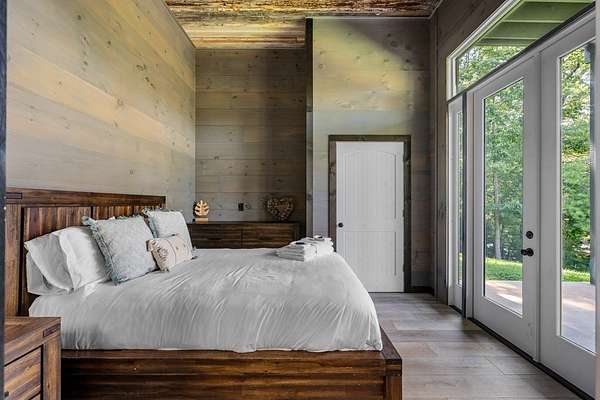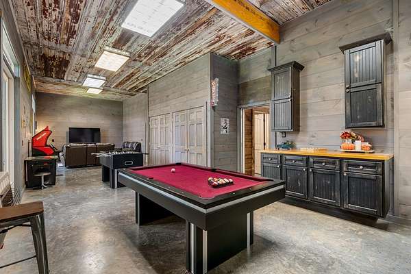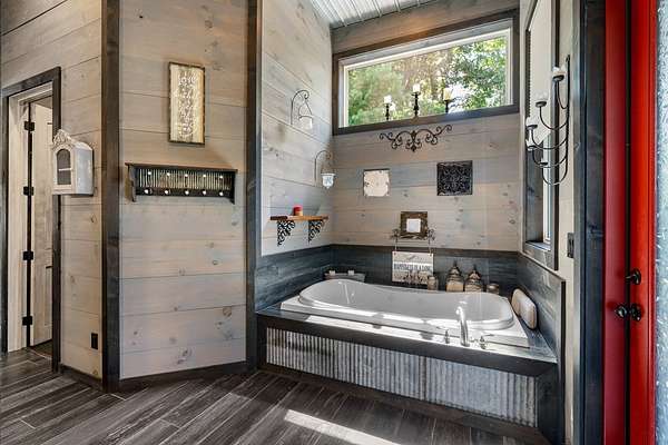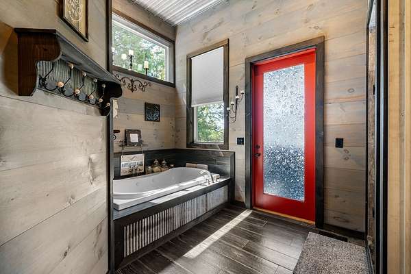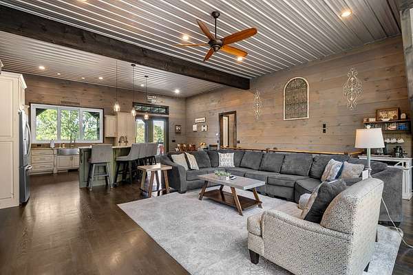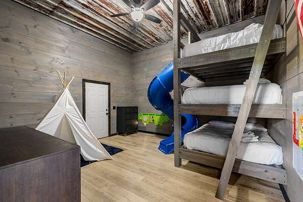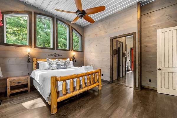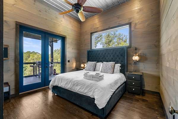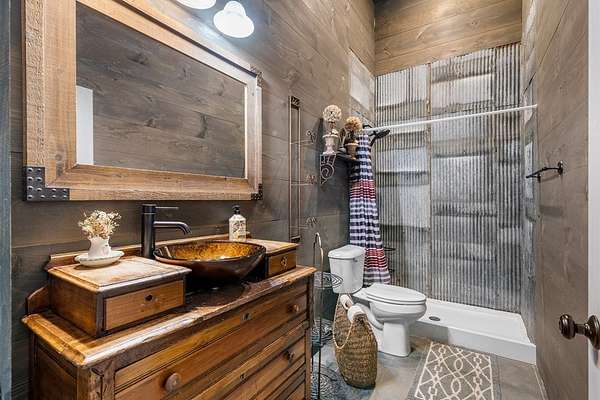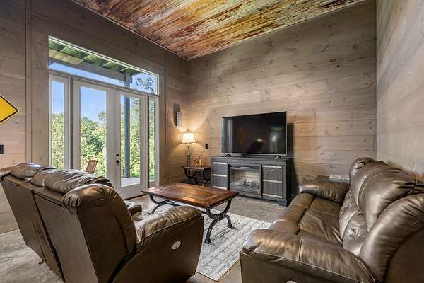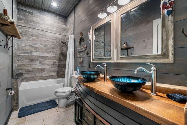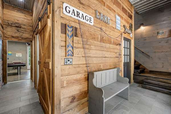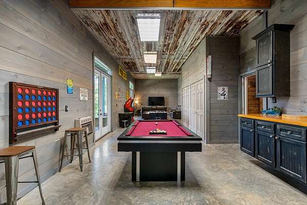 "LIVE LOVE LAKE" really does have all the extras! Welcome to one of the funnest and most unique homes on Lake Blue Ridge, which features a lakeside "container" bar with roll up windows and lounge deck on top, a covered pavilion with the original old stone chimney of the property, a whole house generator, 50 amp RV hookup with a waste dump, 4x4 paths and concrete steps leading down to the dock, and a black-top circular driveway with plenty of parking. All on 1.5 acres! Inside you will find unique customizations everywhere, from the rough-sawn wood walls, large picture windows, high ceilings, spacious bedrooms, and rusted tin accents. The living room boasts a stacked stone wood burning fireplace with built-in firewood storage and stone shelving, alongside a gourmet dream kitchen with a large sliding window above the sink to overlook the sparkling lake and mountain views. In the massive primary ensuite you'll find large windows, super high ceilings, and a bathroom with antique vanity sinks, a soaking tub, a tile shower, and a very spacious walk-in closet. Two more upper level bedrooms with a full bath that features a custom canoe vanity! On the ground level, you'll find the laundry room, a full bath, a large gaming room with a lounge, another guest room, and a triple bunk room with a swirly slide from the top (each of these rooms have ingress/egress to outside). Relax on the patio or the screened in back deck in the hot tub. As if the home itself is not enough, it comes FULLY FURNISHED as a very successful STR! No need to leave this property for fun but if you do, town is less than 10 minutes away. This one you will truly need to see it to believe it! Perfect for events (with an event permit) and entertaining.