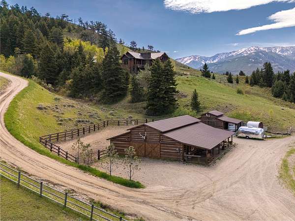 The stunning custom craftsmanship includes reclaimed eucalyptus wood plank flooring from a 200-year-old sheep wool mill from Sidney, Australia, hand-hewn Douglas fir log beams, three dry-stacked stone wood-burning fireplaces with the stone coming from a rock quarry near Mount Rushmore, and complete living quarters above the garage. The beautiful 2,400+- square foot 5-stall horse barn includes a front porch, tack room, gym, and shop. Enjoy hunting, hiking, riding, and fishing directly from your adjoining State Land lease, with access to Custer National Forest and the Wilderness Area beyond--all just 30+- minutes from historic Red Lodge, Montana.