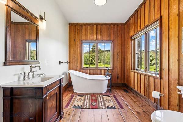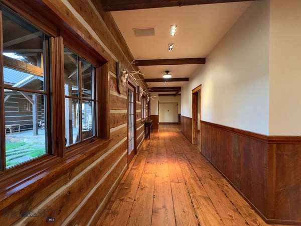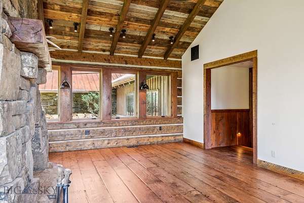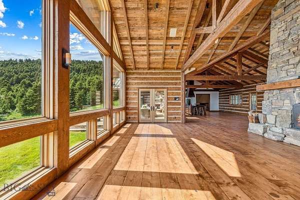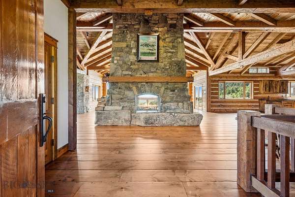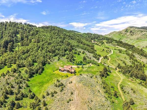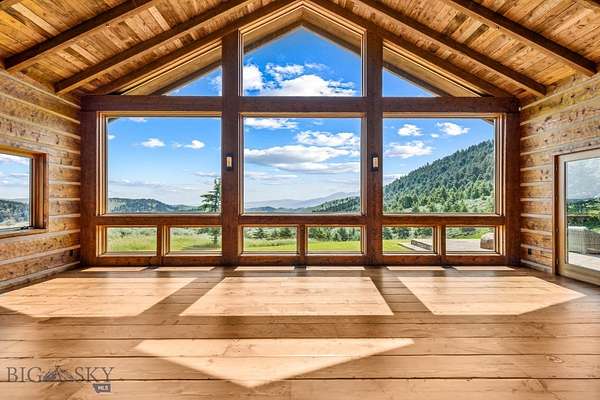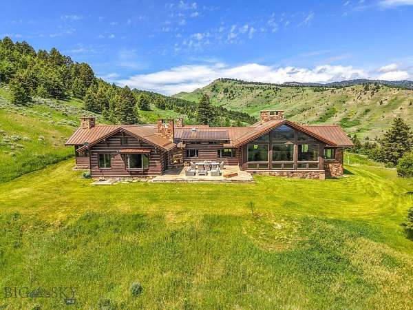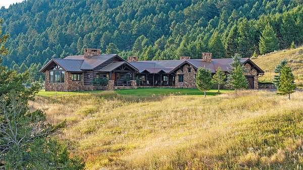 Sky Band Ranch, at the southern base of the Bangtail Mountains captures the magic of Southwestern Montana. Its location between the treasured towns of Bozeman and Livingston makes it even more desirable. The ranch spans +/- 262 serene acres offering the freedom to mountain bike, hike, horseback ride, hunt, snowshoe or cross-country ski right out the back door. It supports horses or other livestock. Area Creek (also known as O'Rea Creek) runs on the ranch for approximately 1/3 mile. The gorgeous western-style residence and pond are tucked upon a hilltop bordered by timbered hillsides, lush meadows and creek bottom providing refuge to elk, deer, moose, bear, grouse, Hungarian partridge, and other impressive wildlife. The residence built in 2008 exemplifies exceptional craftsmanship and meticulous attention to detail, effortlessly combining rustic style with attractive finishes perfectly integrated into the striking Montana landscape. Massive amounts of stone were brought in for the outdoor patio area, some interior and exterior walls, and five substantial fireplaces. Hewn Douglas fir was used for the interior and exterior walls. Custom made cabinetry, solid wood doors, trim and gorgeous wide plank fir flooring which has been recently refinished to perfection are found throughout the main floor. Pella windows and French doors frame the beautiful landscape of mostly ranch land with the Absaroka Mountains as its backdrop. Massive wood beams/trusses and impressive two-sided stone fireplace anchor the sun filled open floor plan of the living/kitchen/dining area creating a wonderful lodge atmosphere for gatherings or hunkering down with an enjoyable book. Additionally, there is a dedicated office/library, a spacious laundry room, and an oversized attached two-car garage. Downstairs is a 4,758 sf partially finished walk out basement offering endless possibilities. The property is behind a locked gate. This may be an excellent candidate for a conservation easement. Sky Band Ranch offers an extraordinary Montana lifestyle for outdoor enthusiasts seeking stunning views, open space and nature near world-class amenities.