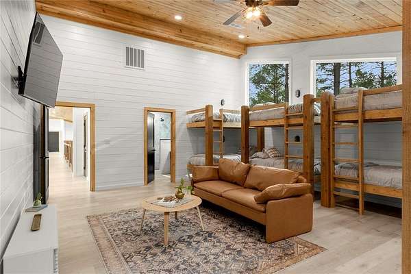 Puff the Magic Cabin is located in Pine Hill North Ph 2!. Indulge in the epitome of luxury mountain living with this extraordinary cabin retreat! Nestled on an oversized lot, this magnificent property offers not only ample parking but also space to park your boat or off-road toys, ensuring endless adventures await. Step inside to discover a world of elegance and comfort. The open kitchen and living room provide room to spread out. Take in the glow from the tile gas fireplace and the soaring ceilings. Host memorable gatherings with ease, thanks to the dining table for 8 and a large island with seating for 6. On the main level, you'll find 4 King bedrooms and 1 Queen bedroom, each boasting ensuite bathrooms for ultimate convenience and privacy. But the luxury doesn't end there--step into the game room for hours of entertainment, featuring a pool table, seating area, TV, and even a basketball game for friendly competitions. Venture upstairs to find a hangout space perfect for relaxing or socializing, along with a spacious bunk room with 4 bunks totaling 8 twin beds. Also 2 King bedrooms and a Queen bedroom, each with its own private bathroom. Enjoy the fresh mountain air from the large balcony, offering a great space to watch nature. But the true fun awaits outside, where endless fun and relaxation await. Fire up the outdoor kitchen for al fresco dining, gather around one of the 2 exterior fireplaces, or cozy up around the fire pit to make s'mores under the starry sky. Kids will love the playset and hanging rope tunnel, there's something for everyone. With accommodations for up to 26 guests, Puff the Magic Cabin offers the perfect blend of luxury, comfort, and adventure. Don't miss your chance to make this spectacular STR your own--see video and schedule your private tour today!