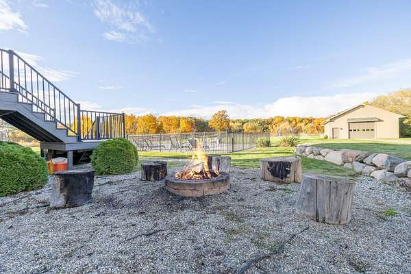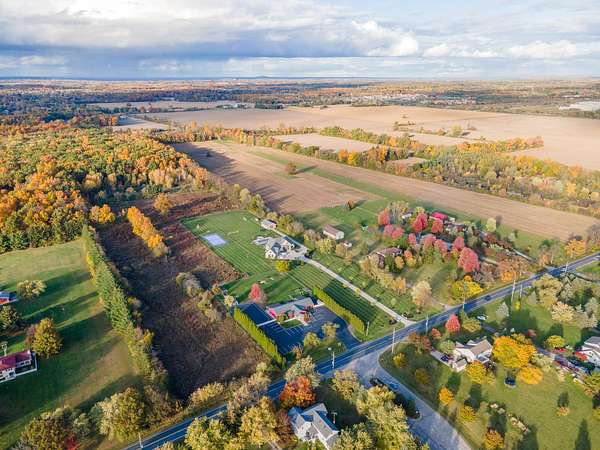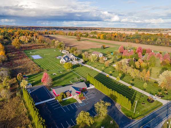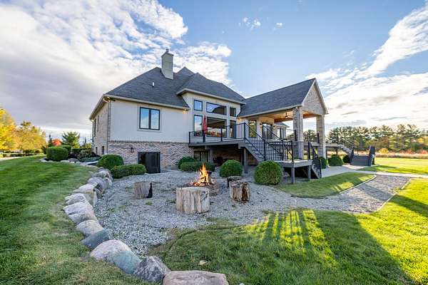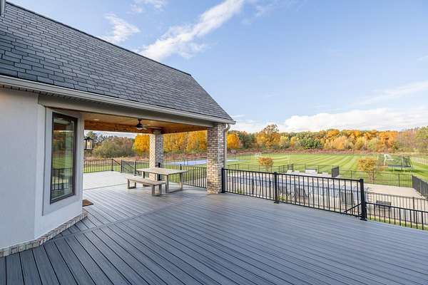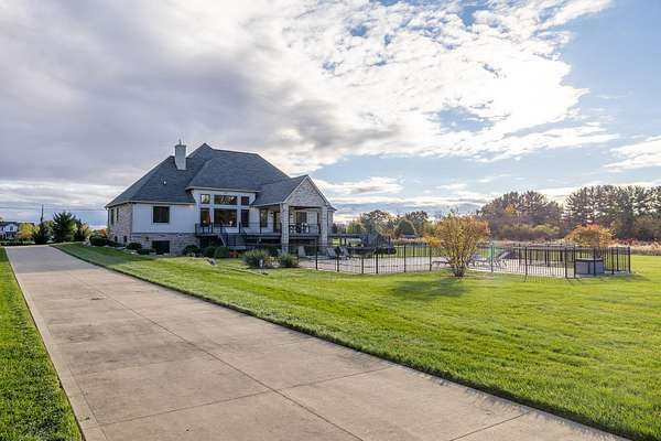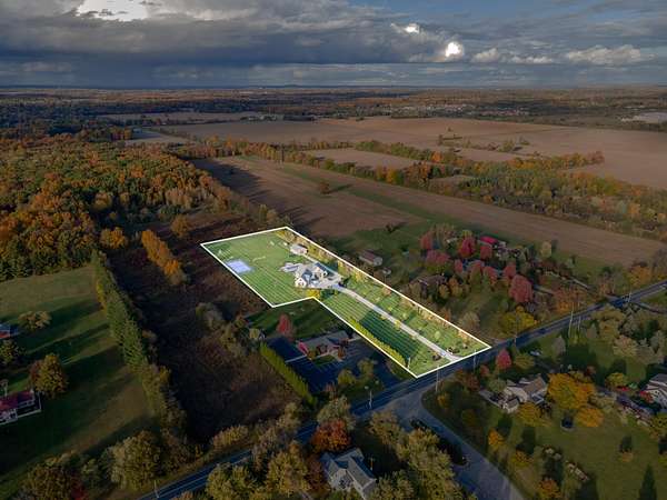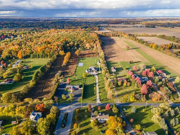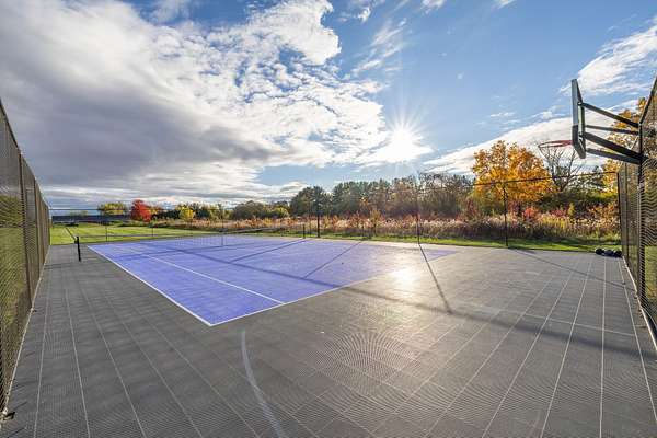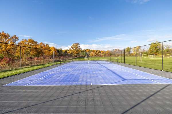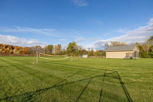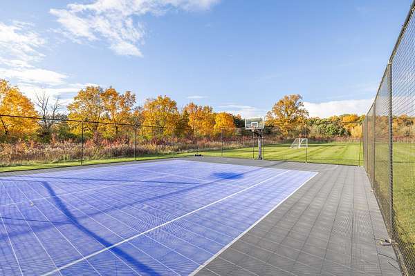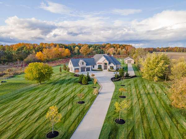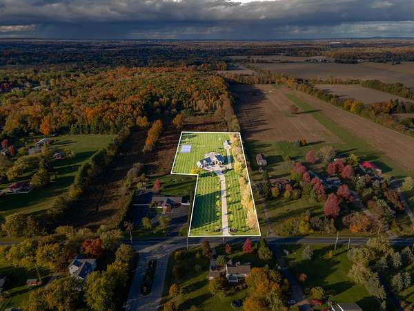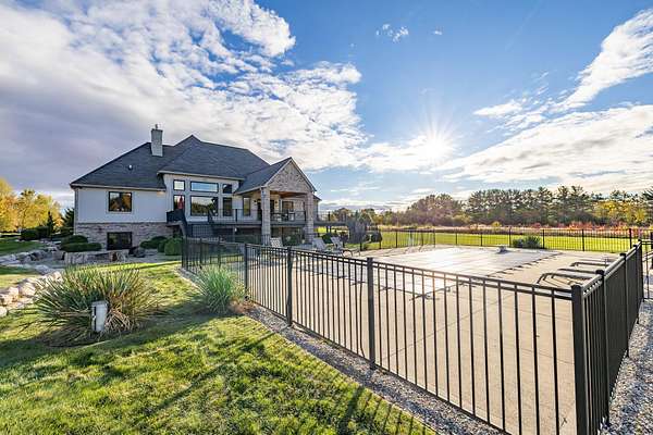 Welcome to your dream ranch estate-an extraordinary 6-bedroom, 4.5-bathroom masterpiece perfectly set on 5 acres of lush, wooded countryside within Saline Schools. This custom-built home was designed for those who crave both elegance and recreation, offering an unparalleled resort-style lifestyle. As you travel down the private, paved driveway, you'll be captivated by the beautifully landscaped grounds and the impressive curb appeal of this 8-year-old home. Step inside to find an expansive open-concept floor plan filled with natural light and showcasing exquisite craftsmanship at every turn. The heart of the home is the chef's kitchen, featuring a Wolf six-burner range, Sub-Zero refrigerator, oversized island with Corian countertops, custom cabinetry, and designer lighting. The kitchen opens seamlessly into the great room with beamed ceilings, a stunning floor-to-ceiling stone fireplace, and a wall of windows offering sweeping views of the backyard oasis. A formal dining room and private office flank the welcoming foyer, adding both sophistication and function. The primary suite enjoys its own private wing, and features a spa-like ensuite with European-style shower, soaking tub, dual vanities, and two walk-in closets. On the opposite wing, two additional bedrooms share a beautifully tiled Jack-and-Jill bath. Perfect for guests or extended family, the in-law suite above the garage includes a separate living room, bedroom, walk-in closet, and full bathroom. The finished walkout lower level is an entertainer's dream featuring a movie theater with tiered seating, recreation areas for pool and Foosball tables, a fitness space, two additional bedrooms, and a full bath. Step outside to your private resort, complete with a massive heated in-ground salt water pool with wave feature, lights, and fountain, surrounded by an expansive concrete patio, tennis court with basketball and pickle ball options, chicken coop, soccer field, and disc golf area. A large 30'x40' outbuilding provides additional storage for recreational vehicles and equipment, while the heated epoxy-floor three car garage adds luxury and convenience. Set back from the road for total privacy and peace, yet just minutes from downtown Saline and Ann Arbor, this estate offers the rare combination of refined living and outdoor adventure. Discover your own piece of paradise where every day feels like a vacation.
