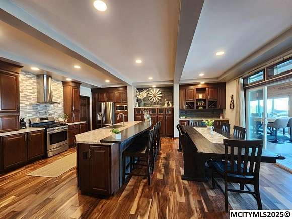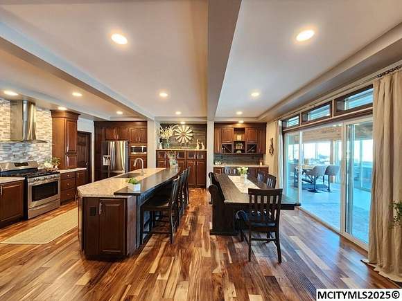 WHY BUY ON THE LAKE AND PAY THE TAXES?! BUY YOUR OWN LAKE! FAMILY OWNED PROPERTY SINCE 1859!! Approx. 7 acre lake 40' - 50' deep stocked with walleye, bass, catfish, blue gill and more! Your own beach, docks, paddle boat & pond-tini included! Panoramic views with the most picturesque setting, you will feel like vacation everyday! Nestled in the mature evergreens secluded from view this ONE OF A KIND RETREAT IS SPECIAL! Spend endless hours in the entertainment area, with included hot tub, pool table, theatre area/includes equip, family room, full kitchen, office, utility/storm shelter, steam shower with stereo, in floor heat. STUNNING HOME! Spacious open floor plan, engineered hardwood floors, pantry, beautifully decorated! Abundant storage! ALL appliances are included plus grill and flat top griddle direct line to LP tank (1 1000 gallon tank owned & 1 1000 gal tank rented) Most grounds equipment and furnishings are negotiable! Call and make this GORGEOUS PROPERTY YOUR NEW HOME! :)
