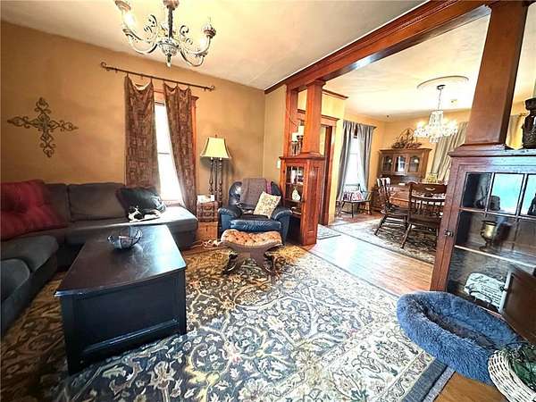 Est $1,051/moWelcome to your peaceful retreat on 7.7 acres, tucked into a mature grove of trees for ultimate privacy and natural beauty. This unique 3 bedroom 2 bathroom home features warm, natural woodworking throughout, creating a cozy inviting atmosphere. The kitchen boasts newer cabinets and flows conveniently into the rewired dining area done in 2009. With direct access off a blacktop road, this property offers both seclusion and convenience. Whether you're looking for a hobby farm or a forever home, this acreage is full of potential and ready for its next chapter!