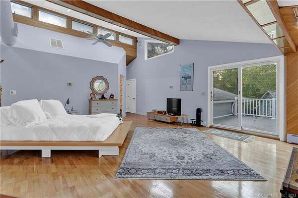 Welcome to your dream home at 940 Durham Road, Wallingford, CT, a truly one-of-a-kind contemporary retreat offering the perfect blend of modern design, natural beauty, and small-town charm. Tucked along scenic Durham Road, this private setting offers nearly two acres of serenity just minutes from Choate, local vineyards, and the charm of downtown Wallingford. Set on a pristine, level lot with access to a peaceful private pond, this property is a rare find on Wallingford's lovely East Side of Town. From the moment you arrive, you'll sense that this is a special home, thoughtfully designed across four spacious levels. provide comfort, style, and incredible versatility for today's lifestyle. Sun-filled living areas, a glass-walled sunroom, and park-like grounds make this home ideal for both quiet mornings and lively gatherings. Whether you're hosting friends, relaxing by the pond, or enjoying the peaceful surroundings, this home offers an exceptional backdrop. The detached two-story garage is a standout feature-heated, powered, complete and perfect for car enthusiasts, hobbyists, or additional storage-4 Cars can be parked inside! There is an additional large shed that provides even more space for equipment or future workspace needs. Perfectly located with easy access to I-91, Route 5, Route 15, and the Wallingford Train Station. The home is just minutes from excellent downtown restaurants, bakeries, coffee shops. Market & Many ourside community activitues up & down Main Streets