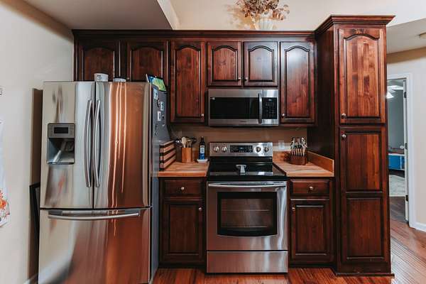 - Dishwasher, Disposal, Dryer, Electric Oven, Electric Range, Microwave, Refrigerator, Stainless Steel Appliance(s), Washer