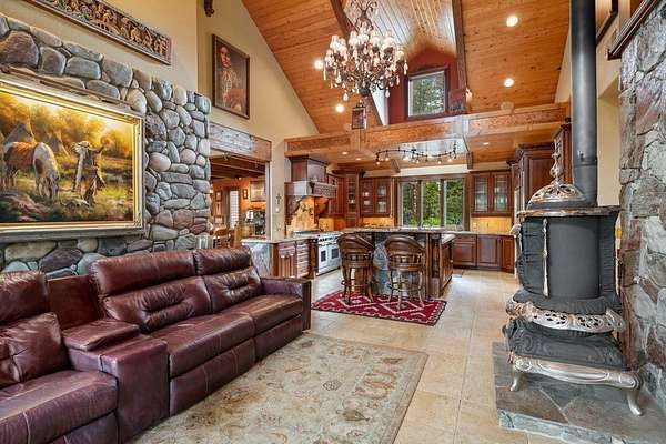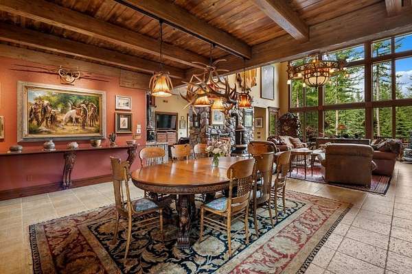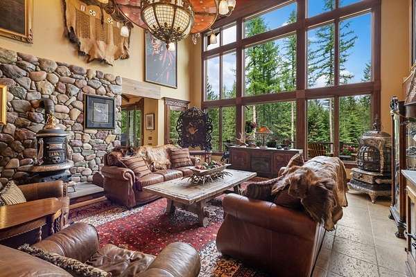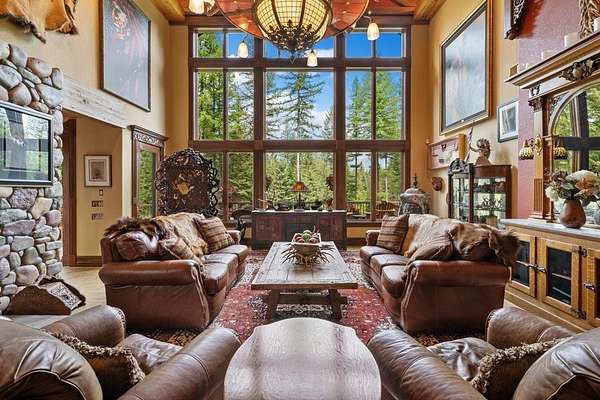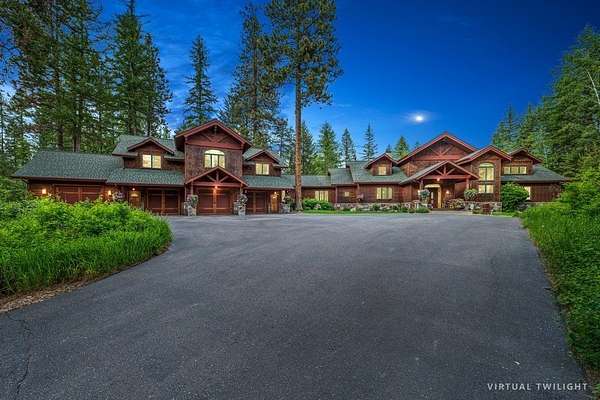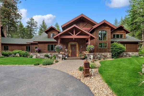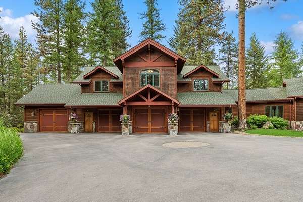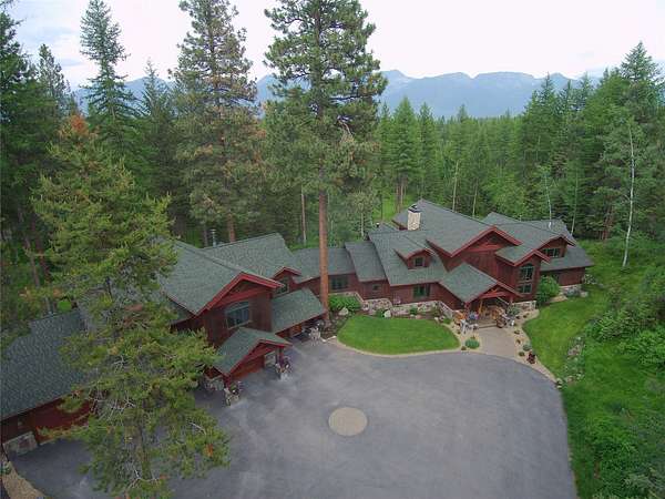 Set amidst 30 acres of pristine Montana landscape, this exceptional estate offers unparalleled tranquility, framed by majestic pines and breathtaking views of the Swan Mountains. The centerpiece is a luxurious 9835-sq ft custom home featuring an attached 4-stall garage and a guest apartment. Additional amenities include two detached guest cabins, a spacious 60'x38' shop, and a paved driveway. Designed with meticulous attention to detail, the main home boasts an open floor plan ideal for entertaining, highlighted by a chef's kitchen with a butler's pantry, vaulted open-beam ceilings, mahogany carved doors & trim, and custom light fixtures to enhance its elegance. A large family/recreation room, theater room, and expansive deck further complement the entertainment options. Practical amenities include a full house generator and central vacuum system. The guest apartment offers flexibility with its own full kitchen, living area, two bedrooms, hot tub, and a private deck. Accessible via the main house or a private entrance, it ensures comfort and privacy for guests. Each detached guest cabin features one bedroom, a 3/4 bath, full kitchen, and laundry facilities, providing additional accommodations in a serene setting. Conveniently located just 10 minutes from Bigfork and Flathead Lake, and less than an hour from Glacier National Park, this property epitomizes the Montana lifestyle-a perfect blend of luxury, natural beauty, and accessibility to outdoor adventures. Discover your piece of paradise in Montana today!