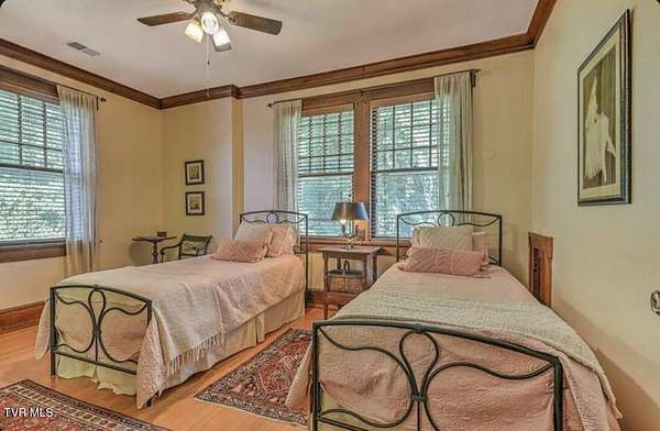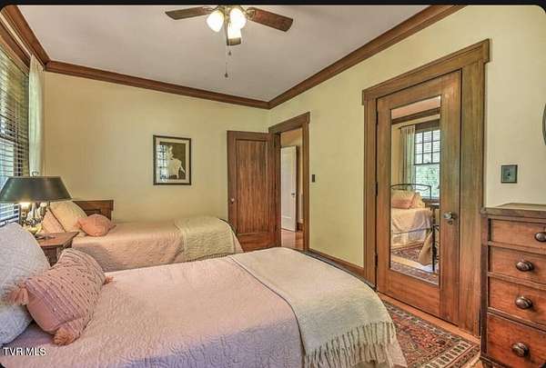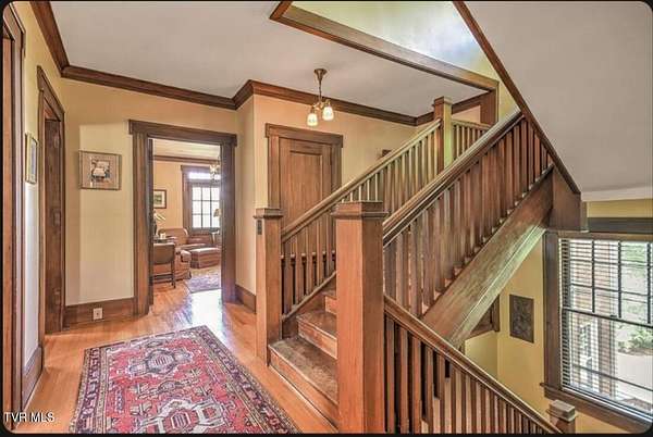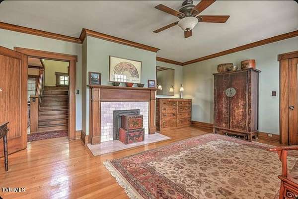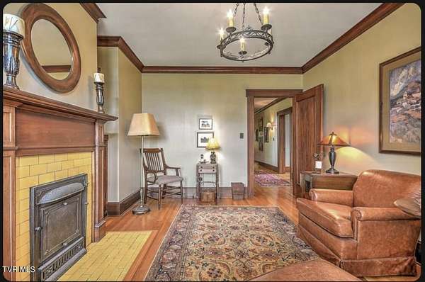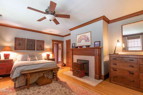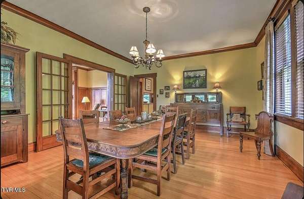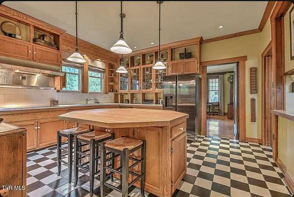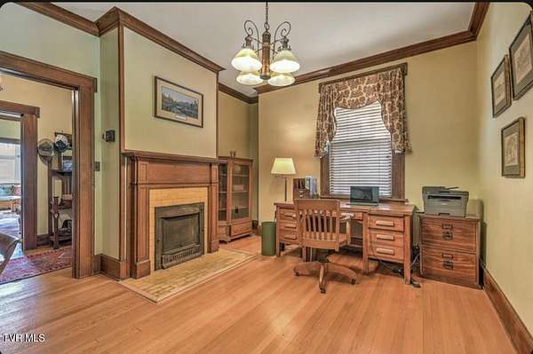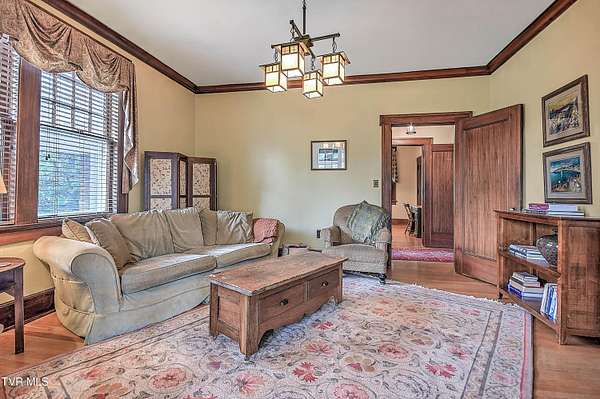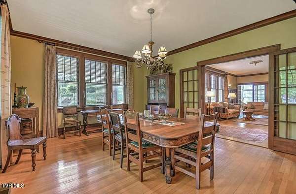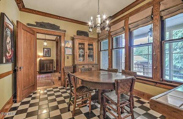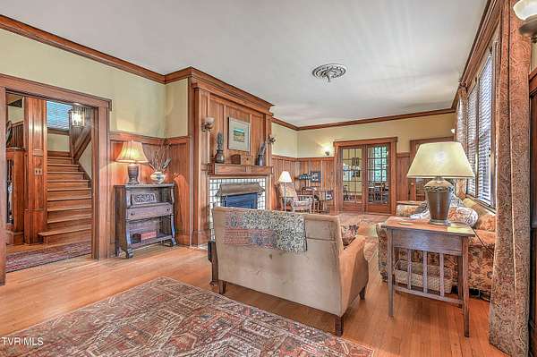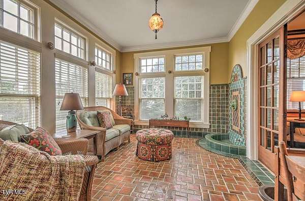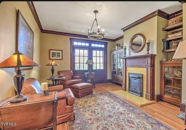 Timeless 1923 Custom Masterpiece: *Active Contingency with 72 hour kick-out clause* Historic Elegance Meets Modern Comfort in Southwest Virginia's Mountains. Nestled in a serene, tree-lined historic neighborhood with breathtaking views of Holston Mountain, this exquisite 1923 home offers 4,200 square feet of warm, inviting living space on a sprawling 1.4-acre partially wooded lot. Custom-built by a lumber company owner for his family, this one-of-a-kind residence blends priceless craftsmanship with thoughtful modern upgrades. Step inside to discover the hallmark features of true Craftsman design: extensive unpainted woodwork, built-in cabinetry, and multiple fireplaces adorned with fine wood mantels and intricate tile accents. The simple yet functional layout flows seamlessly from one comfortable room to the next, including a spacious living room, formal dining room, updated kitchen with breakfast room, private office, sun-drenched sunroom boasting exquisite tilework, den, and versatile studio space. With four generously sized bedrooms and three full bathrooms, plus an enormous attic and basement for endless storage or expansion potential, this home provides ample room for family, guests, or creative pursuits. Outside, the front porch opens to a professionally landscaped patio.The detached two-car garage adds convenience, while the wooded acreage behind the house ensures privacy and a connection to nature. Modern enhancements include a state-of-the-art geothermal heating and cooling system with gas backup for energy efficiency (2025 upgrades), a restored Ludowici tile roof for enduring style and durability, new dishwasher, refrigerator, cooktop, and countertops. Location is everything in this charming Bristol neighborhood, just minutes from downtown. Enjoy a slower pace of life, four distinct seasons, a sense of cultural heritage and 30 minute access to the Appalachian Trail, and the South Fork of Holston River, one of the nation's premier fly-fishing destinations.