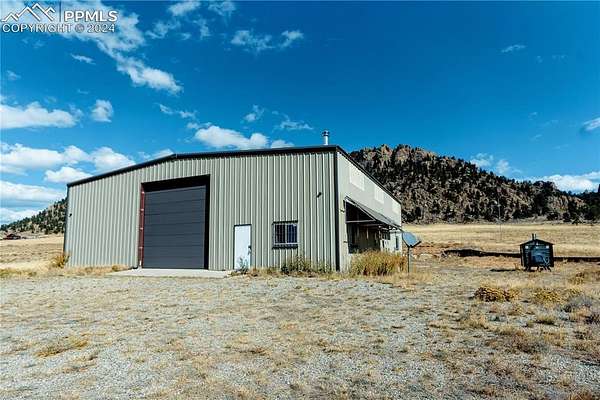 Nestled on a picturesque 40-acre property bordering a Pike National Forest, this unique opportunity offers a 60' x 60' x 18' Total of 3600 sq ft Insulated, Robust, Steel Beams Workshop with 600 sq ft Living Quarters, 600 sq ft Loft & 600 sq ft Basement. The entire workshop is heated with a Radiant Heating System powered by Wood Master Furnace, PAID OFF 2024 Inverter, Solar Panels & wire maintenance-free batteries. Well with a maximum pumping rate of 15 GPM it's perfect for residential or agricultural use. The property also features a Septic System with 1,000-gallon Two-Compartment Tank. The living quarters are thoughtfully designed with a kitchenette that includes a fridge, microwave & sink, a spacious living area warmed by a wood-burning stove that ensures cozy Colorado winter nights, and an adjacent sleeping area with room for a full-size bed & large bathroom for added comfort. Workshop and approximately 8 acres of the property are fenced, providing convenience, security, and ample space for various uses. Property is eligible to apply to Subdivide into Smaller Plots, with a minimum size of 5 acres per plot. There are no restrictions on the number of Horses, large & small livestock, as well domesticated animals that can be Raised on the property. With easy access to Eleven Mile and Spinney Reservoirs, you'll enjoy some of the finest fishing & boating opportunities in Colorado. Explore endless views, and recreational activities, from miles of hiking and thrilling ATV trails. For hunters, this property is a dream come true, offering close access to abundant wildlife and excellent hunting grounds. This prime location also presents significant potential for a high-income rental property or other entrepreneurial ventures-let your imagination run wild! Situated 45 min from Woodland Park, 1:15 min from Col. Springs & just over an hour from Breckenridge, one of Colorado's Top Ski Destinations, this property offers the best of Colorado's outdoor lifestyle & adventure.