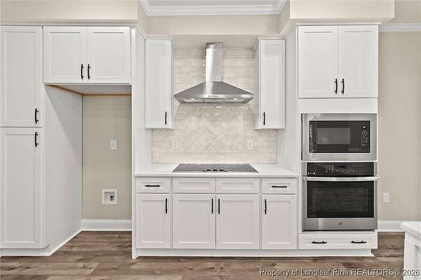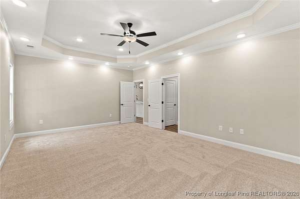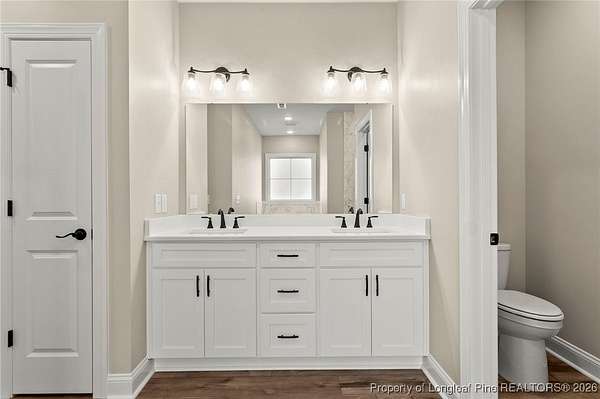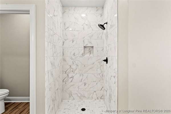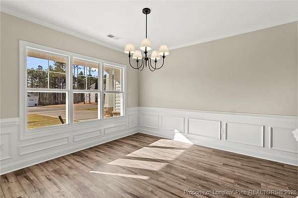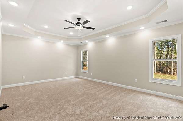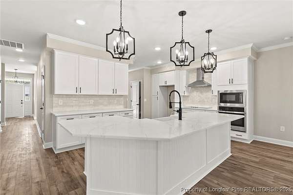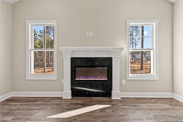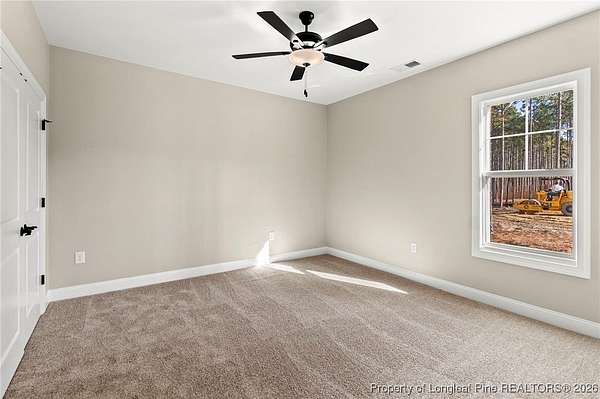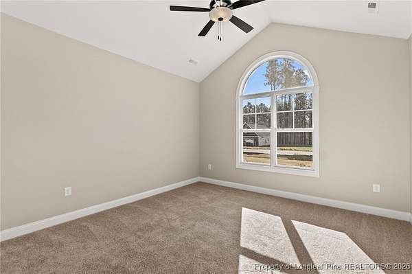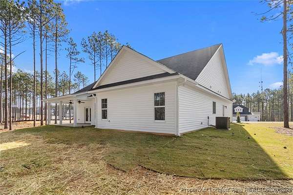Stunning New Construction Home on 2.59 Acres - Modern Upgrades, Open Layout & Prime Location Near Fort Liberty (Bragg)! Discover luxury living in this gorgeous one-story new construction home nestled on 2.59 private acres in a small, gated community surrounded by mature trees and beautiful natural scenery. This thoughtfully designed home blends modern style with timeless details and offers the perfect combination of space, comfort, and convenience. Step inside the welcoming foyer with transom and sidelights, leading to an elegant formal dining room featuring upgraded lighting and classic wainscoting-perfect for hosting gatherings. Throughout the main living areas, you'll find upgraded Portchester oak flooring, adding warmth and sophistication. The home features a split-bedroom layout, with two spacious bedrooms and a stylish shared hall bathroom on one side of the home. The heart of the home is the open-concept living room, complete with vaulted ceilings, abundant recessed lighting, a ceiling fan, and a sleek modern electric fireplace that creates a striking focal point. The chef-inspired kitchen is a showstopper, offering: - Stunning pendant lighting - Large island with seating - Level 3 quartz countertops - Beautiful designer tile backsplash - Deep farmhouse sink - 36" range with stainless vent hood - 42" upgraded cabinetry - Wall oven with multi-function microwave - Walk-in pantry with custom wood shelving. Additional main-level features include a half bath, a laundry room with extra cabinetry, and a covered rear porch with ceiling fans-easy to convert to a screened porch for year-round enjoyment. Upstairs, you'll find a private bedroom suite with a full bathroom and closet-ideal for guests, an office, or a teen suite. Outside, the home shines with upgraded landscaping, including full-yard grass, shrubs, and decorative plantings. The upgraded vinyl siding offers superior durability and curb appeal. With 2.59 acres, you have space to add a detached garage, workshop, or garden-while still enjoying the peaceful wooded surroundings. Located just minutes from Fort Liberty (Bragg) via 295, Methodist University, and a wide variety of shopping and dining on Ramsey Street, this home offers unmatched convenience in a beautiful, private setting. Zoned for excellent schools and tucked inside a gated community with large lots, this is a rare opportunity you don't want to miss. Don't wait-schedule your showing today and experience this exceptional new home for yourself!