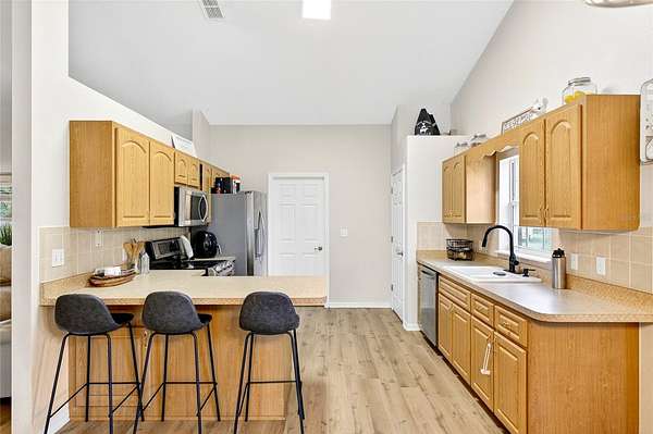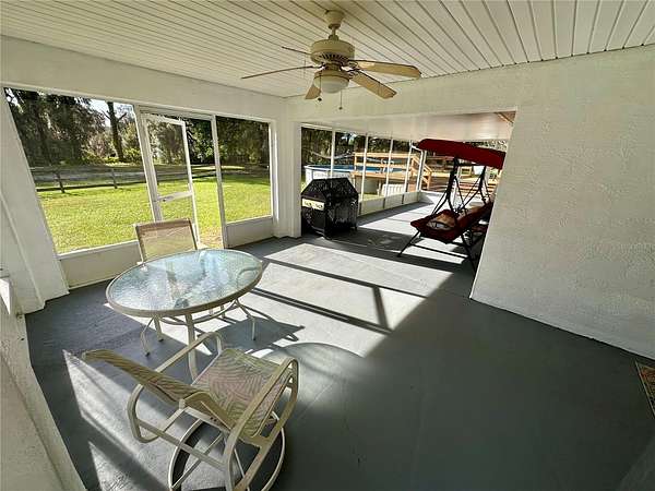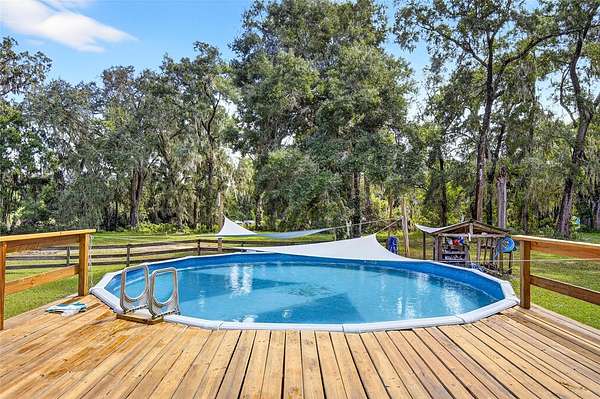 Step inside from the brand new LVP, freshly painted interior and exterior to the 2024 new roof, and new HVAC in 2022, this home is completely turnkey. Interior features over 1,600 SQFT with cathedral ceilings, and an abundance of natural light with no carpet for easy upkeep. To the right of the home sits two spare bedrooms and guest bathroom. While to the back facing part of the home you will be welcomed into the masters retreat. The master bedroom can comfortably hold a king size bed set, has his and her closets along with an ensuite bathroom with a stand up shower. In this kitchen, you have stainless steel appliances and tons of counter space too! There is an additional room for an office/den or just for storage. Walking out to your newly screened in lanai, you're led to your private pool with a recently stained deck, perfect for sipping morning coffee or just enjoying the quiet wooded view. Bring the animals, the toys, and whatever you desire to utilize your land. Fill station is also featured. Property even has RV hook up or for a camper! Close to I75, WEC, HITS, shopping, and restaurants. Owner motivated. Come and see it today! Survey Available.
