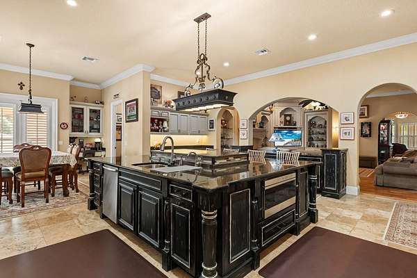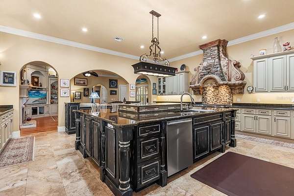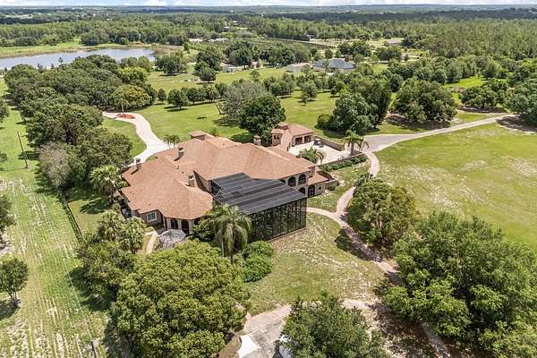 Lakefront one-of-a-kind architectural masterpiece with over 12,000 square feet of living space situated on your private gated compound of 10.9 acres. Soaring 25-foot ceilings define the expansive interiors, while custom high-end design details elevate every space. The gourmet kitchen is a chef's dream including a massive kitchen island, professional-grade appliances, gas range and butler's pantry. Property features two primary suites, private elevator, home theater, office, steam shower, wine room, grand stone curved staircase, full bar and second-story entertainment lounge. Outdoor amenities include resort-style pool and spa, covered summer kitchen area, two balconies with scenic views, two private gates, two long brick paved driveways, ample parking space for cars, RVs and boats and a boathouse with two slips on the private Kirkland Lake. Additional recent upgrades include newer roof, air-conditioning units, water heaters and whole-home generator. Enjoy seclusion and beautiful lakeside scenery while being close to major highways, airports, hospitals, Disney, Universal and more.